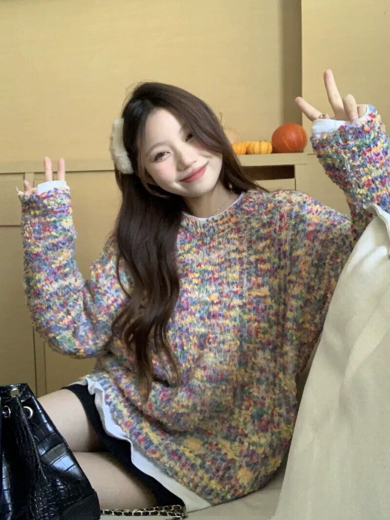 センスヒットカラードットプルオーバーセーター女性の冬 2023 新しいソフトワックス怠惰なスタイルオールマッチツイストニットセーター ウィンター 冬物 0921980441176919