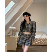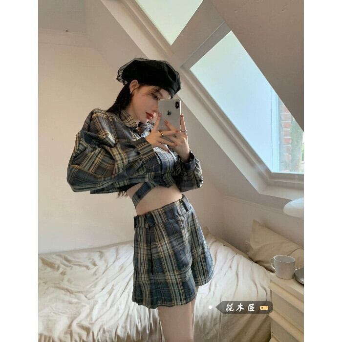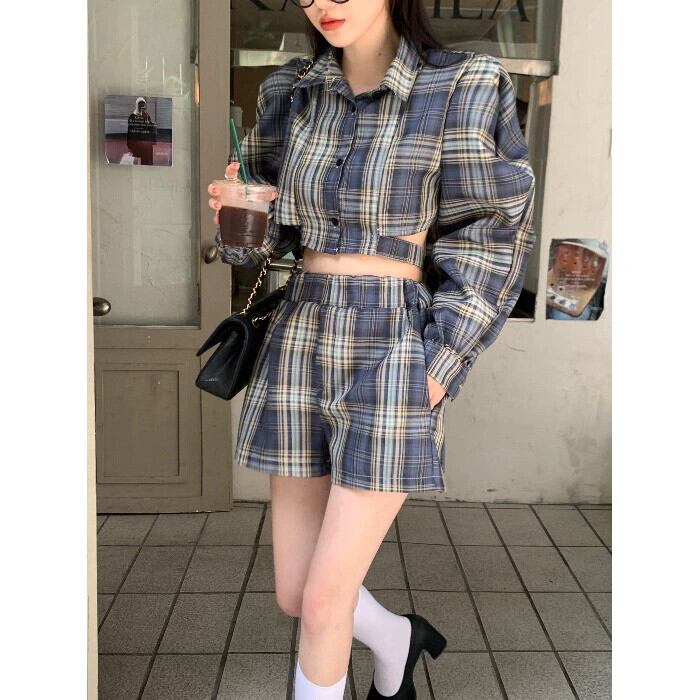 センス人格ファッションスーツ女性 2023 夏の新しいチェック柄シャツカジュアルショーツツーピーストレンディ サマー 夏物 ブルマー 0921925156119858