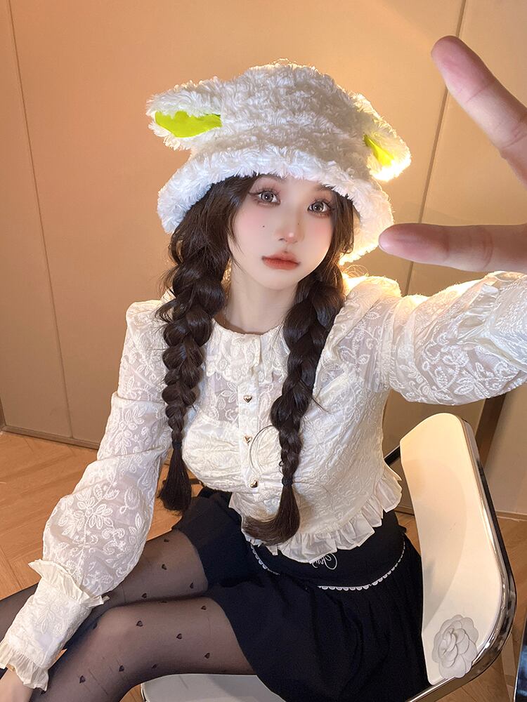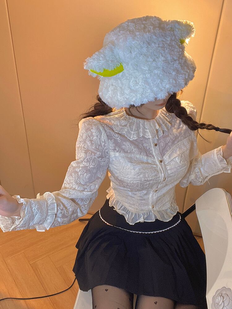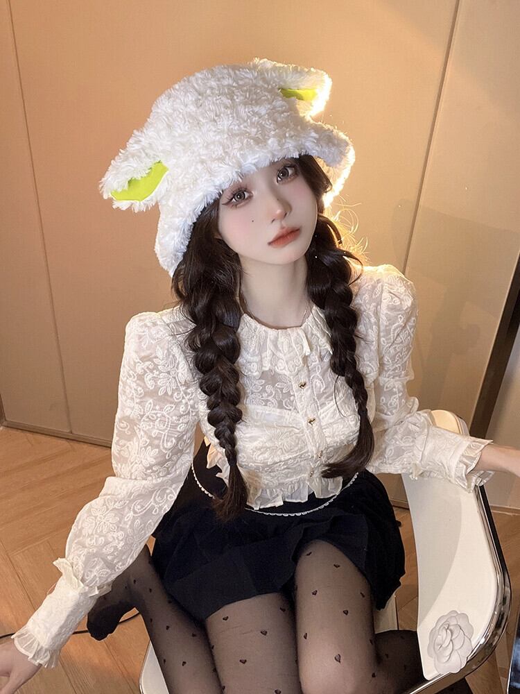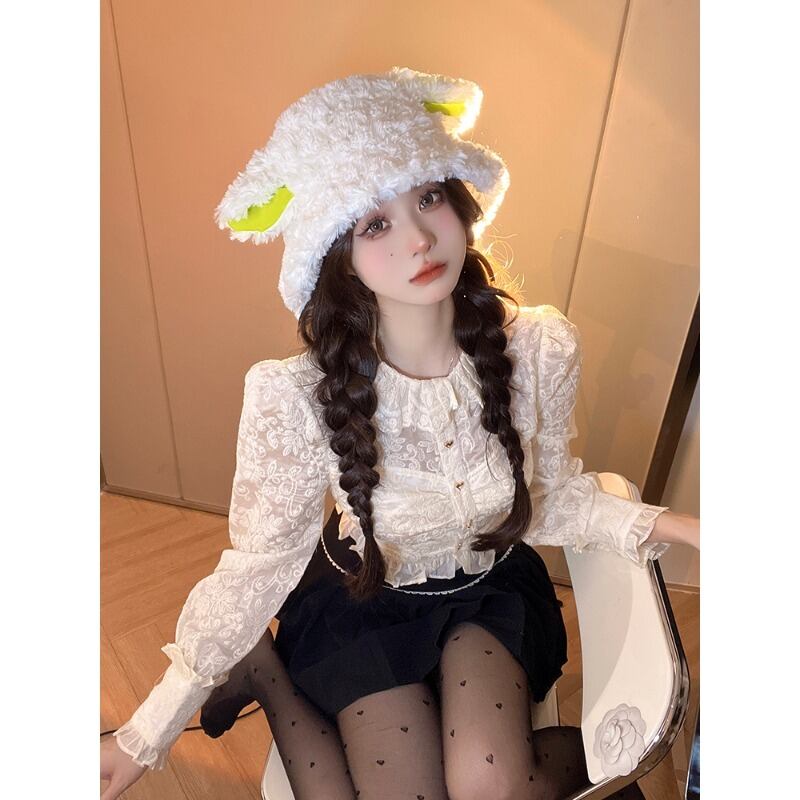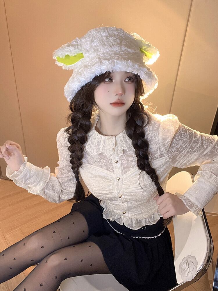 フランスの宮廷スタイルのスプライシングレースボトミングシャツ婦人服春と秋のスタイルの小さなシャツスリムフィットショートジャカードシャツ スプリング 春物 オータム 秋物 0921941167503071