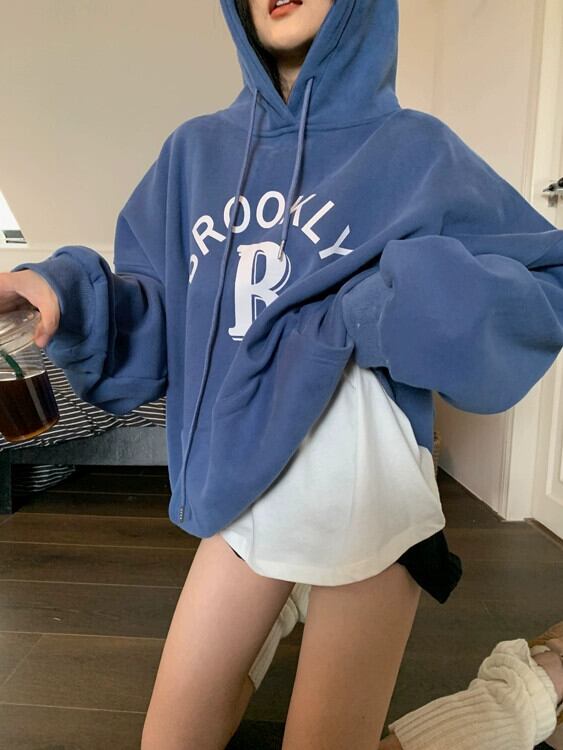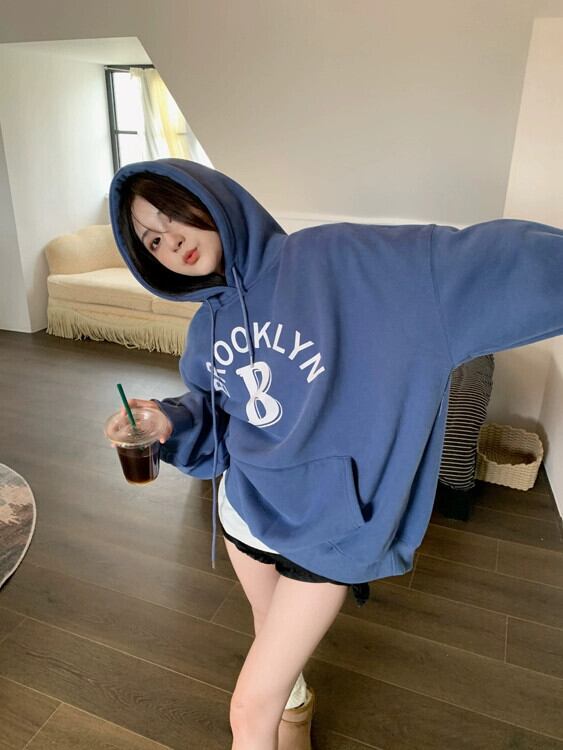 怠惰な風文字プラスベルベット肥厚フード付きセーター女性の春と秋 2023 新しいオールマッチルーズスリム長袖トップ ロング スプリング 春物 オータム 秋物 092193698051421