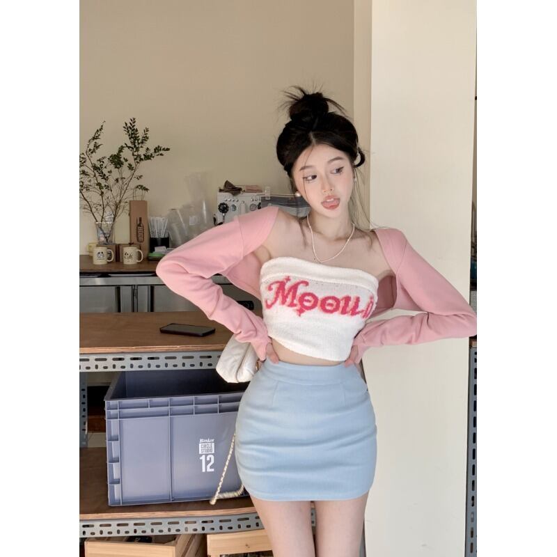 純粋な欲望のファッションスーツの女性の 2023 夏の新しいショートカーディガントップベストチューブトップスリムスカート 3 点セット サマー 夏物 0921991887461774
