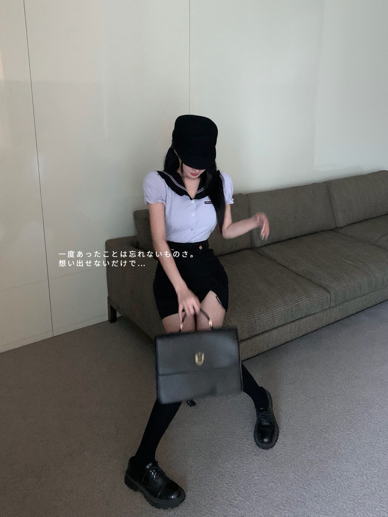 純粋な欲望 ese カレッジスタイルシャツ女性の夏 2023 ニューエイジ削減カラーコントラストネイビーカラー半袖シャツ サマー 夏物 0921986024570406