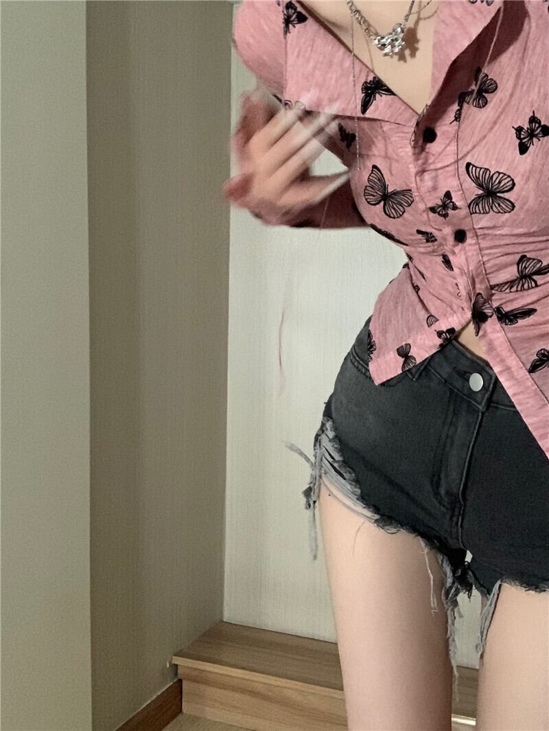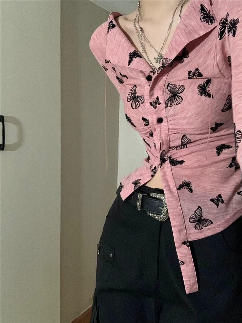 甘辛風蝶プリント長袖 Tシャツレディース 2023 春新作レトロスリム薄手ボトムカーディガン ロング 大人ガーリー スウィート キュート カジュアル スプリング 春物 0921933780713734