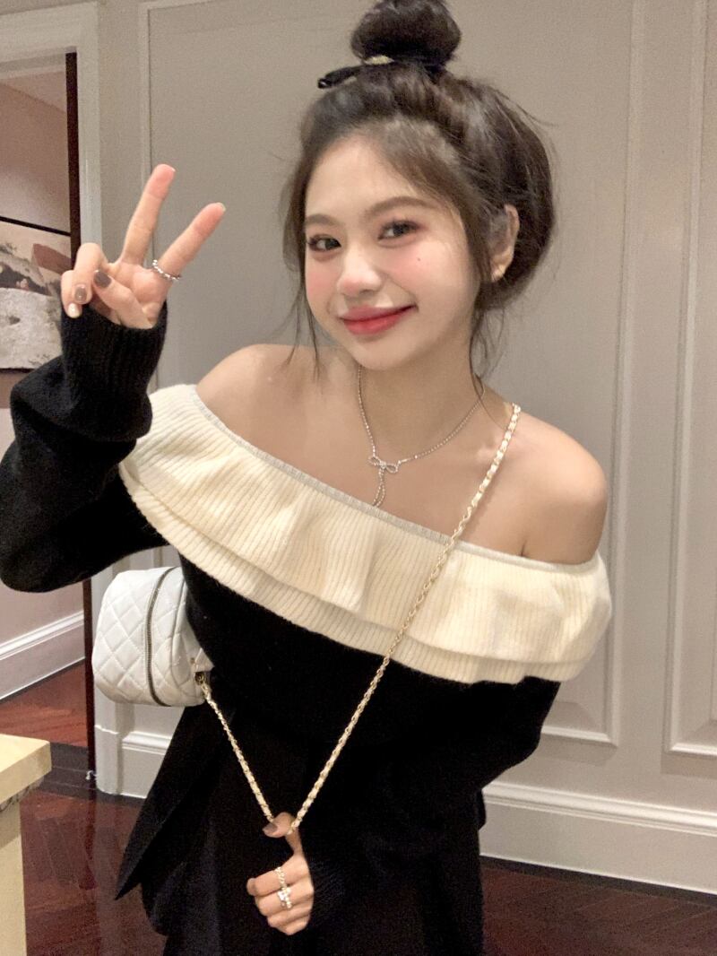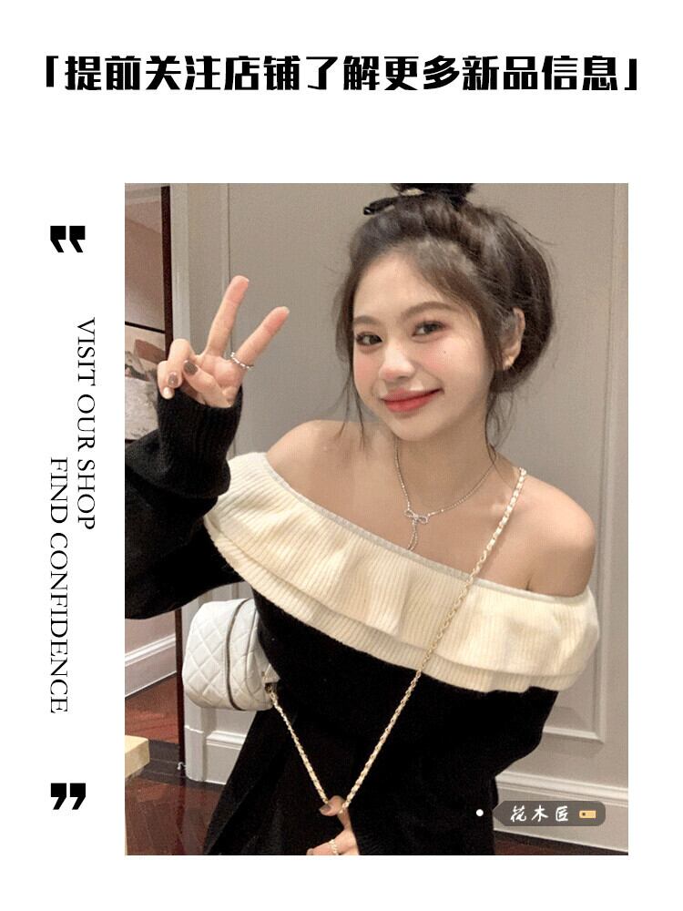 フレンチフリル気質年齢軽減プルオーバーセーター女性の春と秋の 2023 新しいショートセクションスリムスリムニットセーター潮 ラッフル スプリング 春物 オータム 秋物 0921955214704281