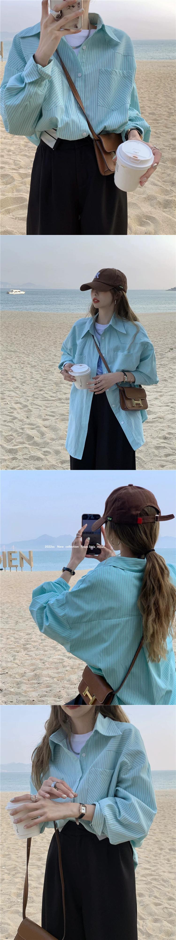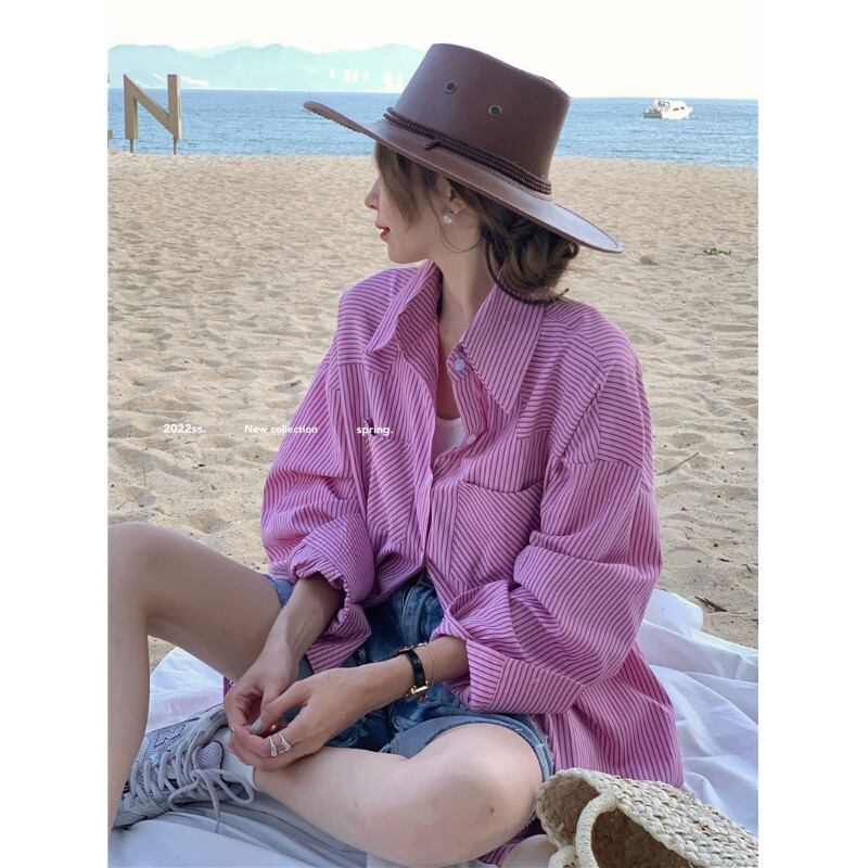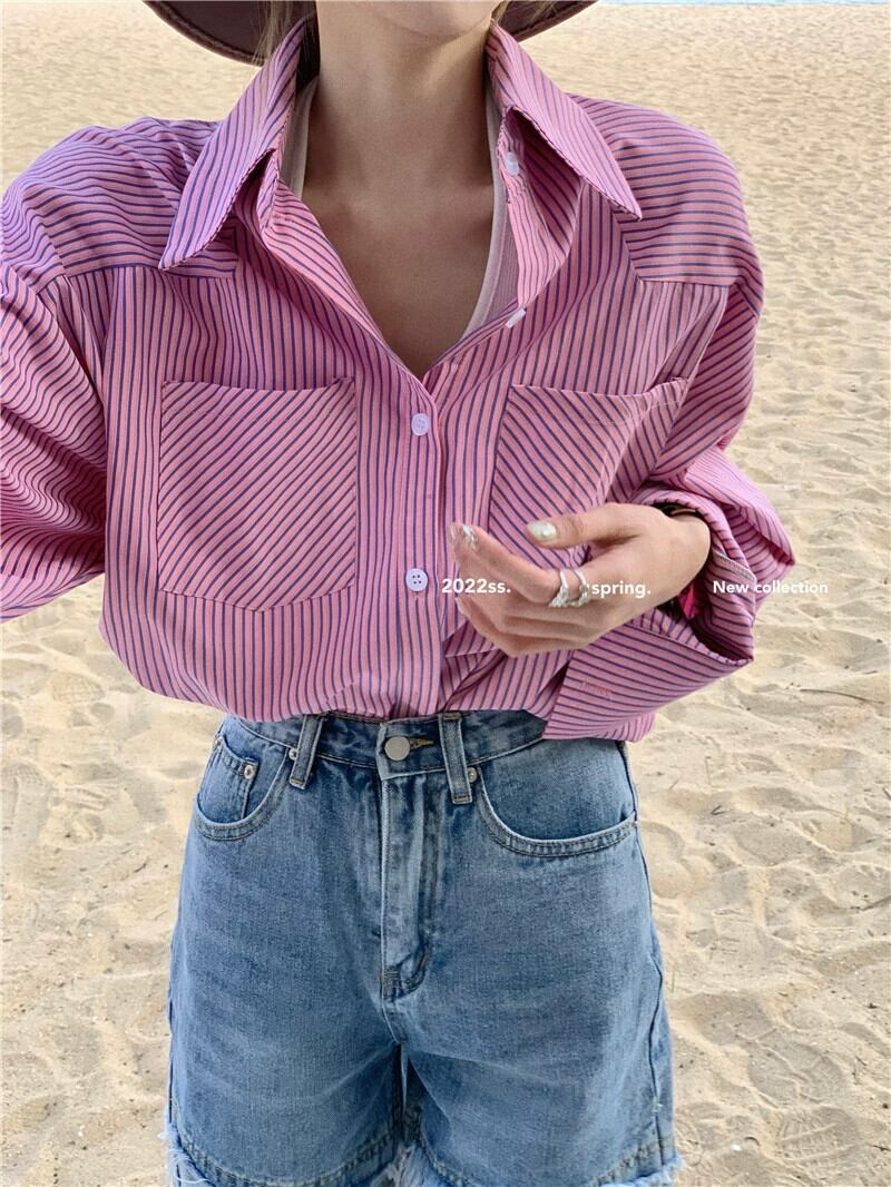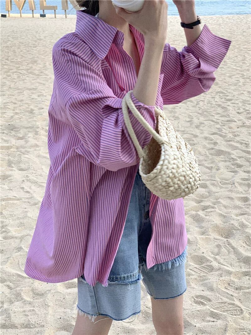 スタイル縦縞オーバーサイズシャツ女性の夏の新しいデザインセンスコントラストカラーカーディガンルーズ痩身ジャケット潮 サマー 夏物 ストライプ 0921936118578031