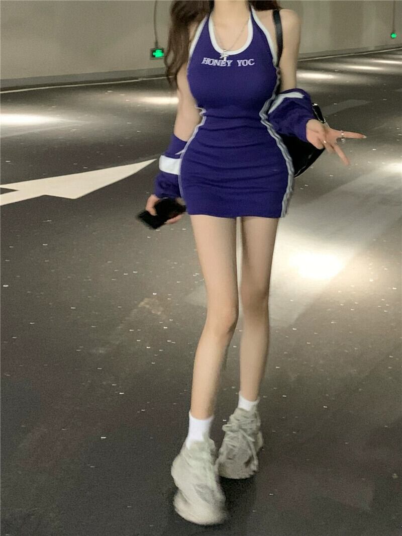 インターネットセレブ気質ファッションスーツ女性の夏 2023 新しいレターぶら下げネックスカートショートショールツーピーストレンディ サマー 夏物 0921989599711418