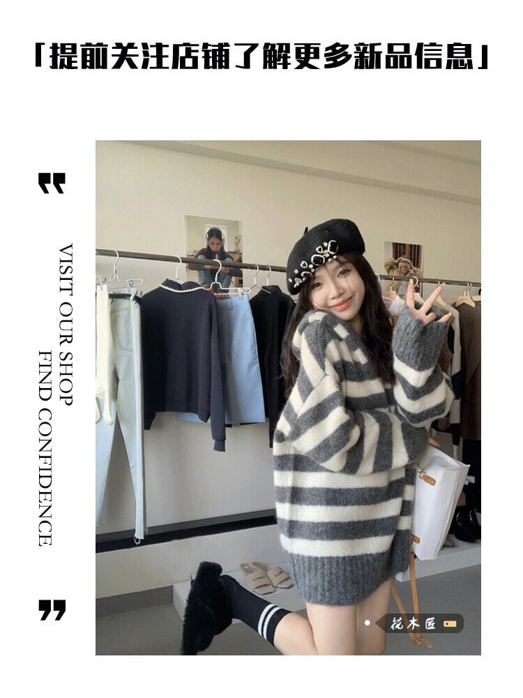 怠惰な風の色のコントラストストライプのフード付きセーター女性の 2023 年春の新しい気質オールマッチデザイン感覚ルーズトップ潮 スプリング 春物 0921942244072548