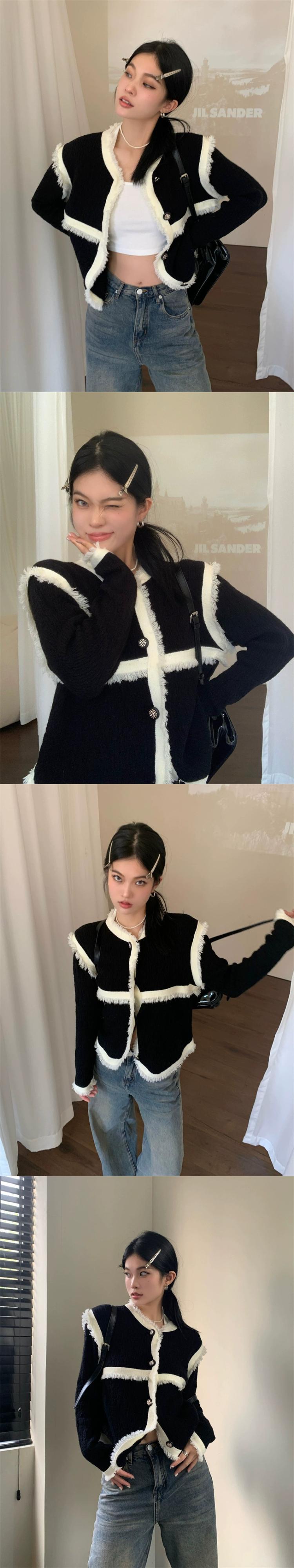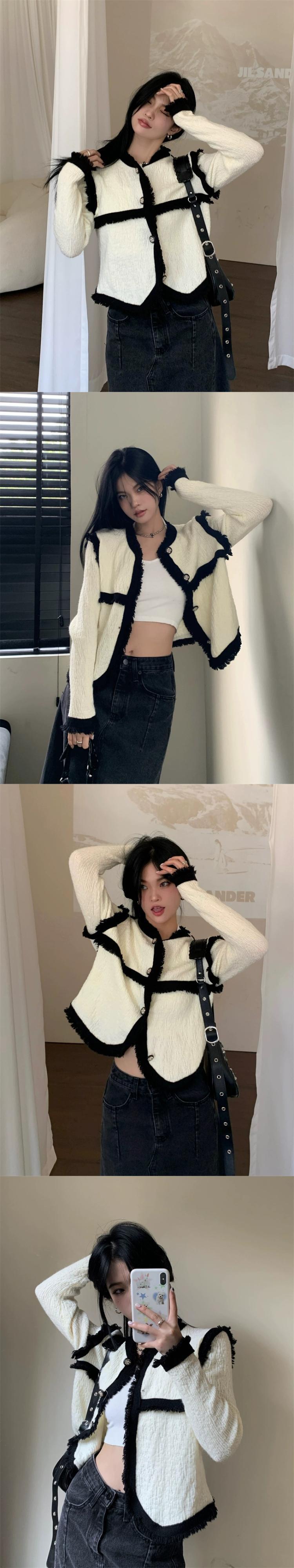 シックなデザインセンスの小さな香りの風テルニットセーターレディース春の新色コントラストスプライシングニッチ緩くて薄いトップ スプリング 春物 0921992241070830