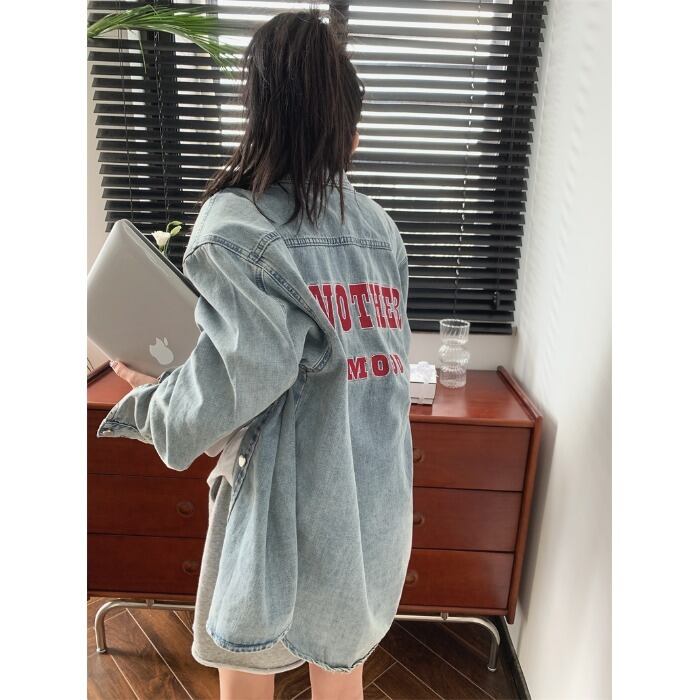 早春アインスタイルボーイフレンドスタイルレター刺繍デニムシャツジャケット女性 2023 新しいスタイルミッドレングストップトレンド レッド スプリング 春物 0921966055961105