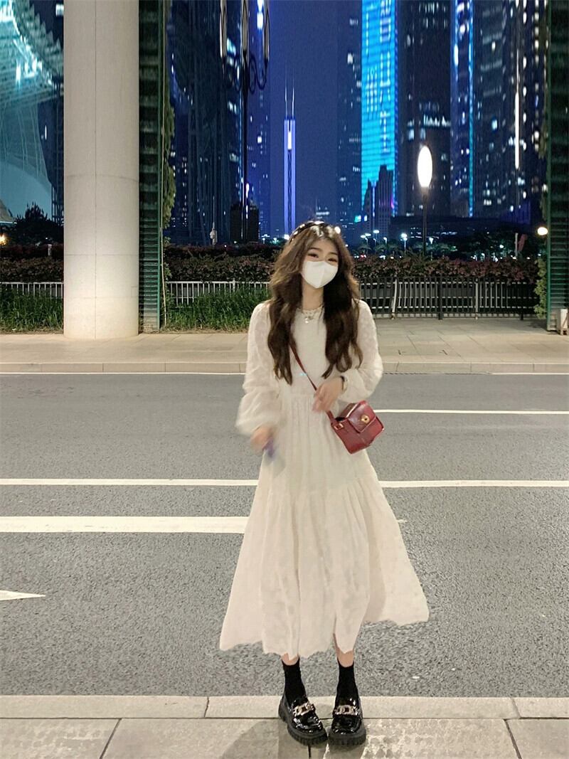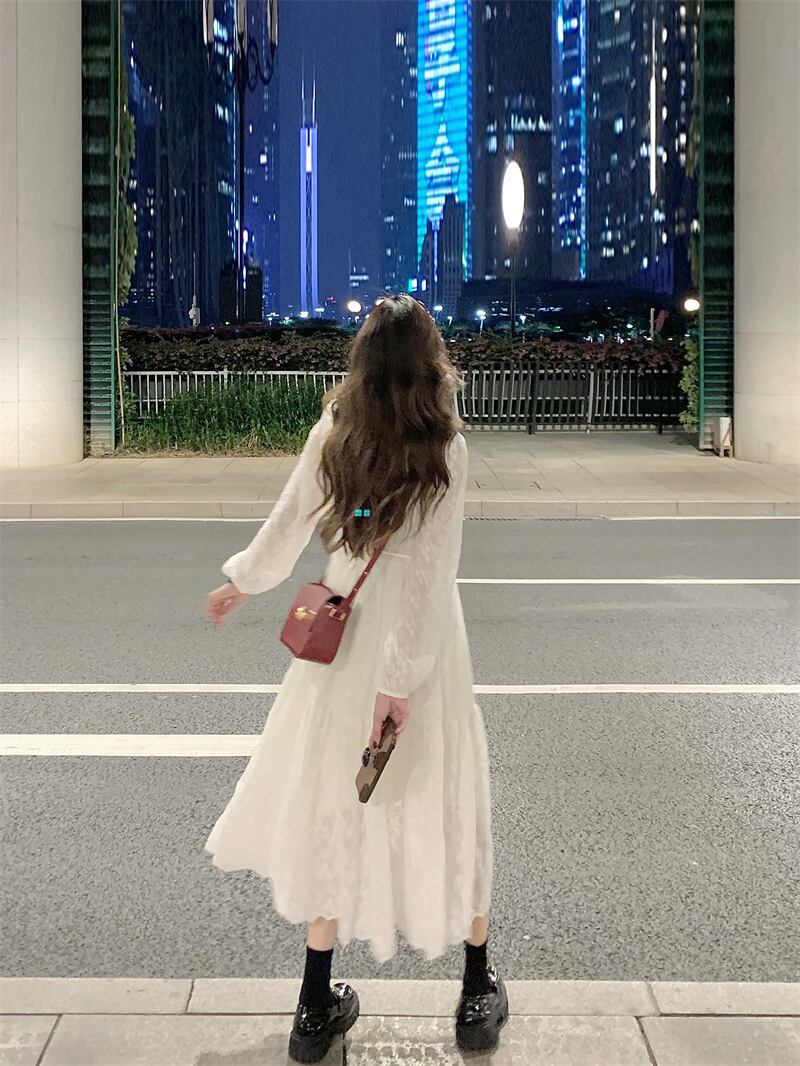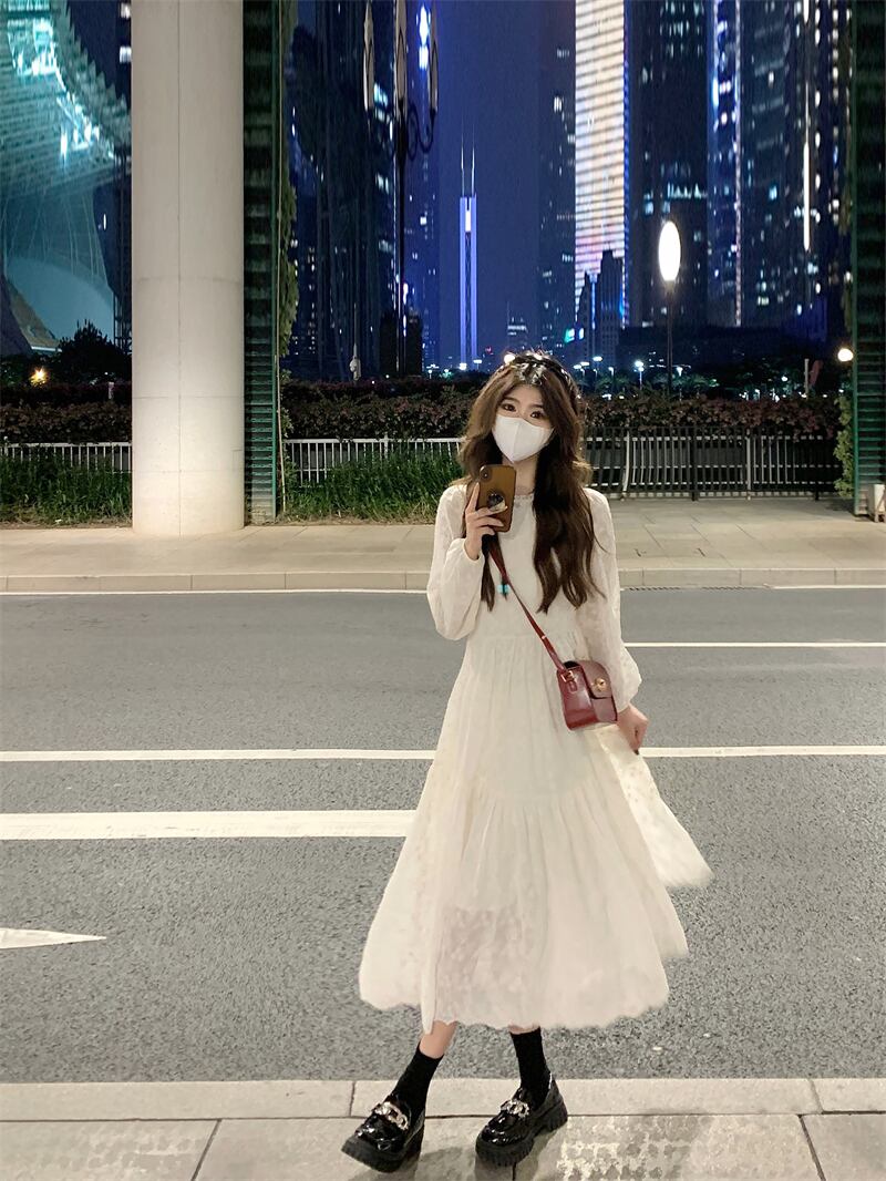 フランスのスーパーフェアリーレース刺繍長袖ドレスレディース春インナーロングスカート気質優しい風高級スカート スプリング 春物 0921942228327952