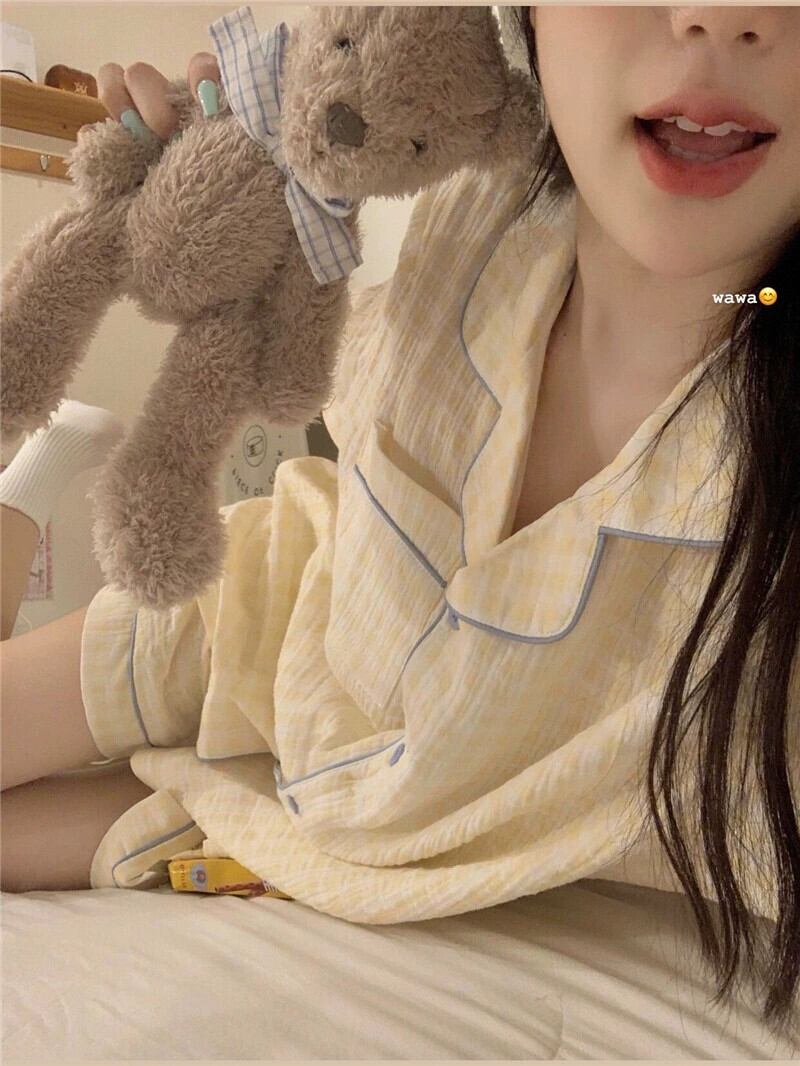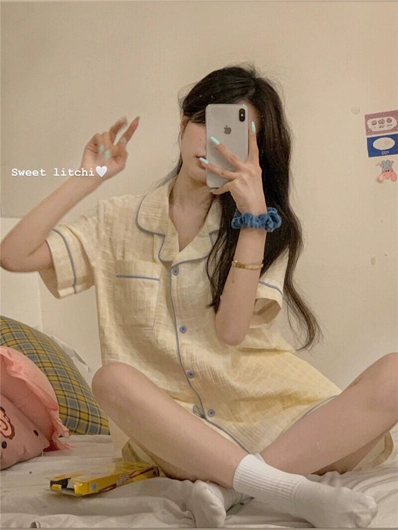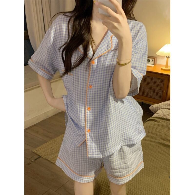 チェック柄半袖パジャマセット女性の夏のショートパンツパジャマ甘い小さな新鮮なカジュアルホームサービス 2 点セット 大人ガーリー スウィート キュート サマー 夏物 ショーツ ブルマー 0921971192611160