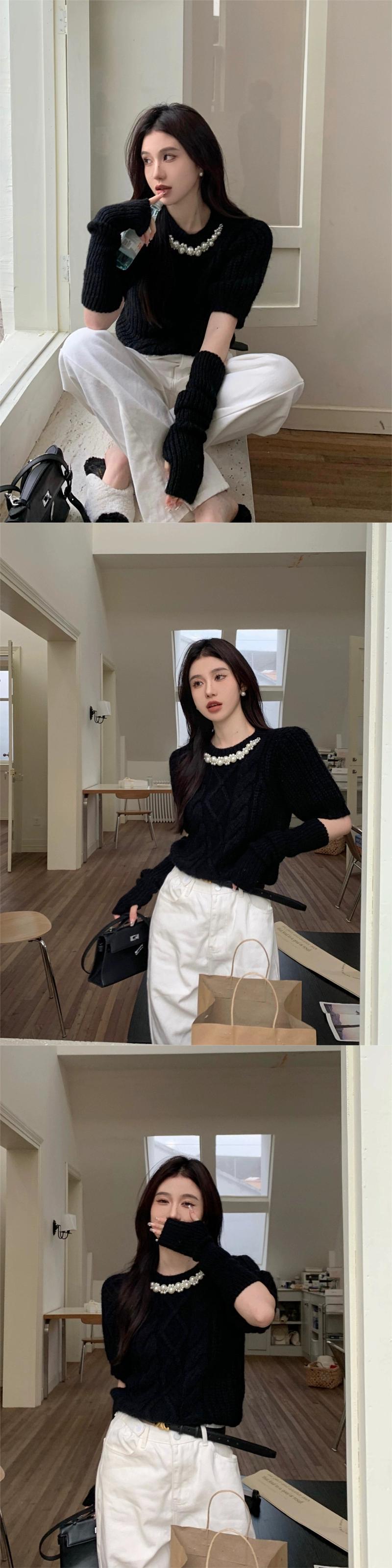 ブラック パフ スリーブ セーター レディース センス ニッチ 春袖 スパイス ガールズ スリム ショート ニット セーター トップス スプリング 春物 0921933170514975