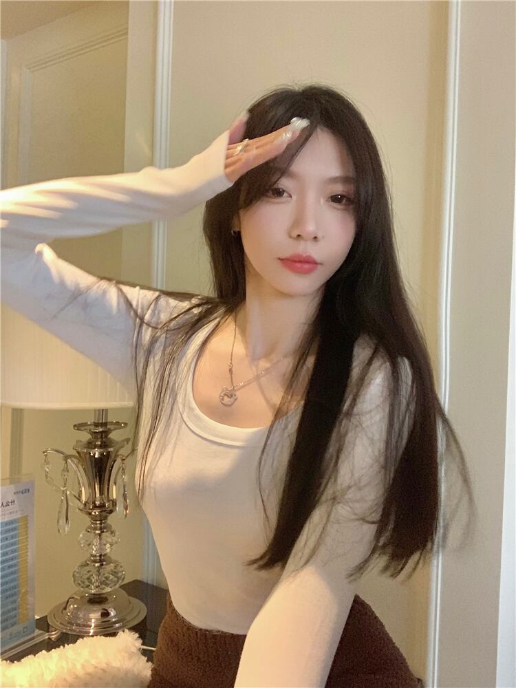 ピンク eign スタイル自己修養長袖 Tシャツ女性の春 2023 新しい U ネック気質底シャツトップ潮 ロング スプリング 春物 0921995012467600