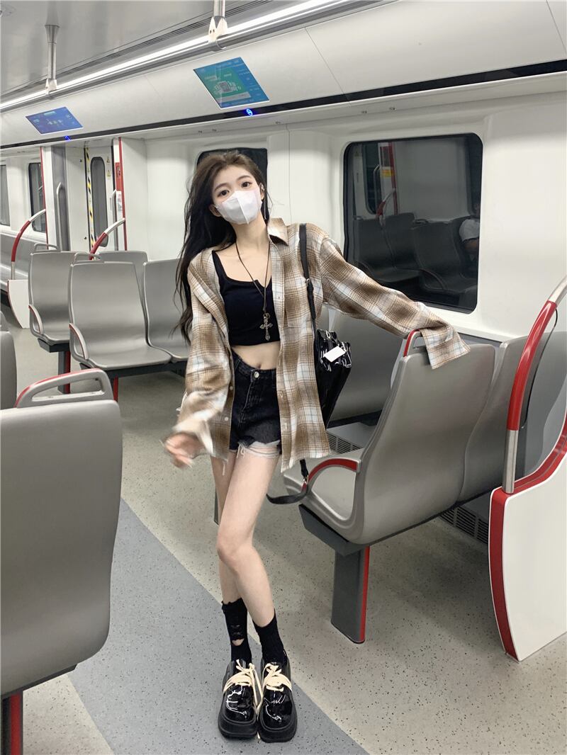 バージョンの bm スタイル長袖シャツジャケット女性の夏の 2023 新しいオールマッチフライドストリートルーズミッドレングストップ ロング サマー 夏物 0921922237270752