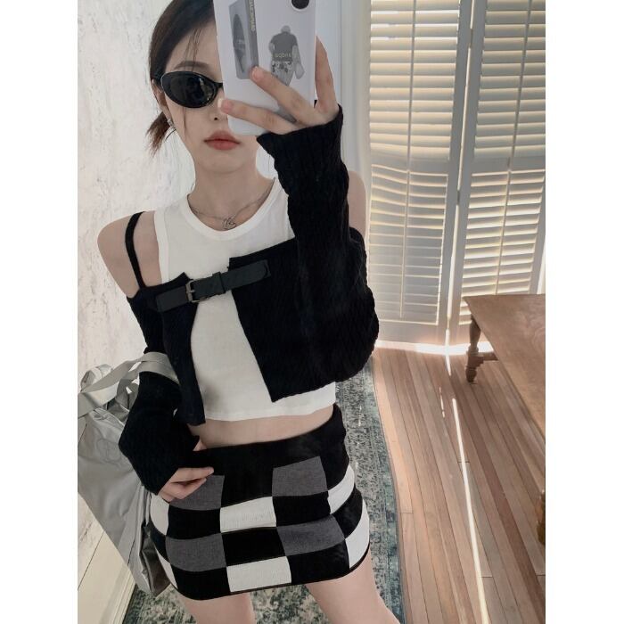 ミレニアム スパイス ガールズ オフショルダー クロップド ニットウェア レディース 春デザイン 薄手ブラウス スリム フィット クロップド シック トップ スプリング 春物 0921961416639966