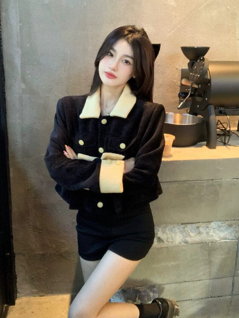 小さな香りのバージョンのミルキーイエローのポロカラーショートジャケットレディース2023春の新しい気質緩くて薄いトップ潮 スプリング 春物 0921922200760167