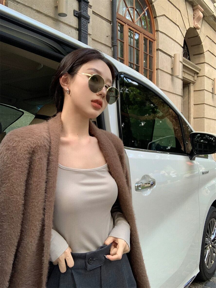 気質スクエアカラー長袖 Tシャツレディース 2023 春の新作スリムフィット細い鎖骨を示すオールマッチボトリングシャツトップ潮 ロング スプリング 春物 スクウェア 0921972930266040
