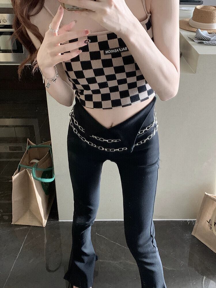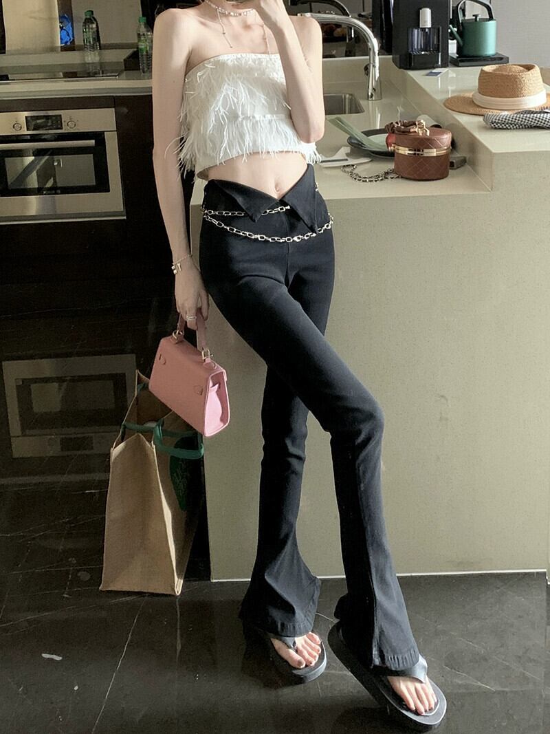 センスシックなチェーンタイトハイウエストマイクロフレアパンツ女性の 2023 春の新しい気質カジュアルパンツ潮 ハイウェスト レッド スプリング 春物 0921974971680122