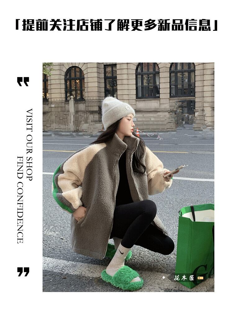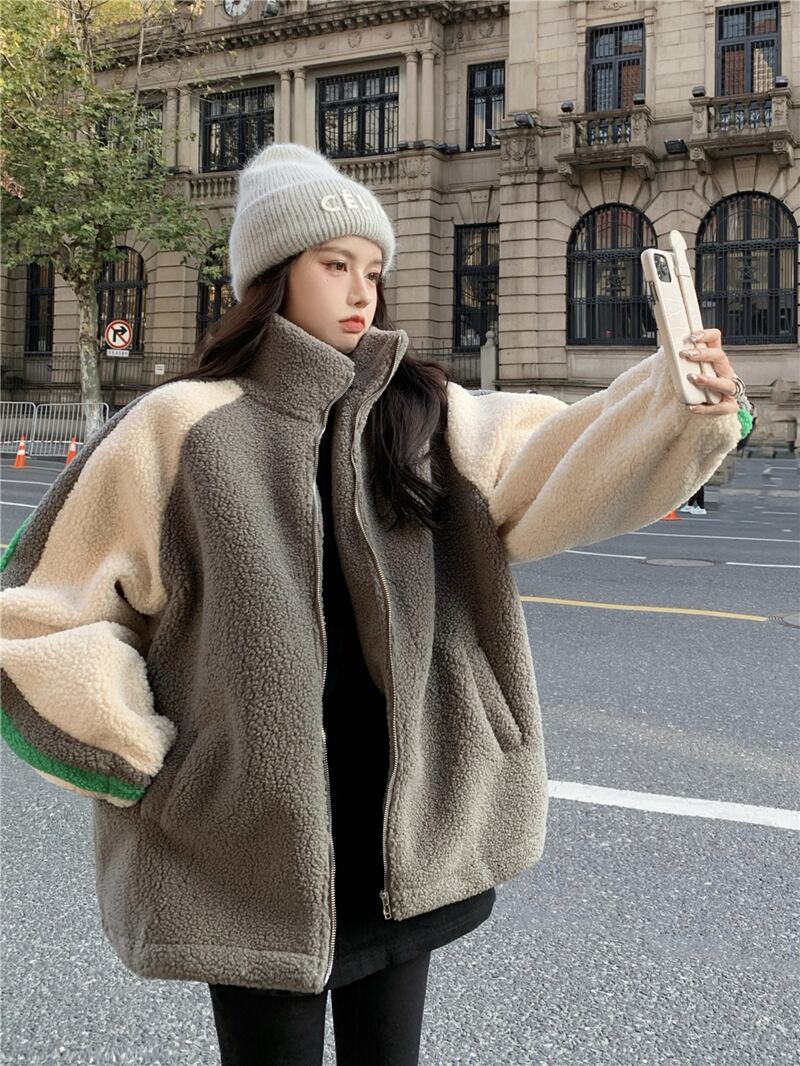 カラーマッチングスタンドカラー模造ラムウール綿ジャケット女性の冬ルースソフトワックス状小さな肥厚暖かい綿ジャケット コットン ウィンター 冬物 0921910747424944