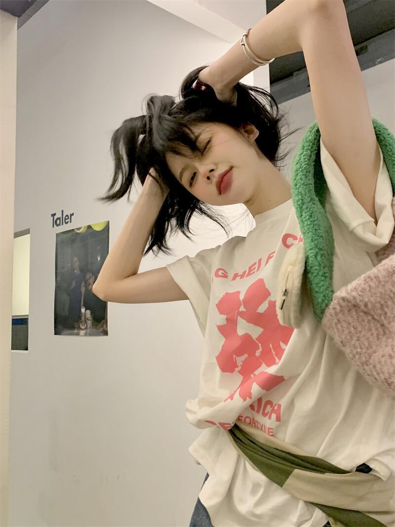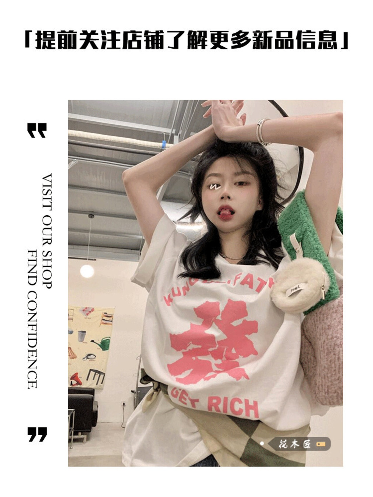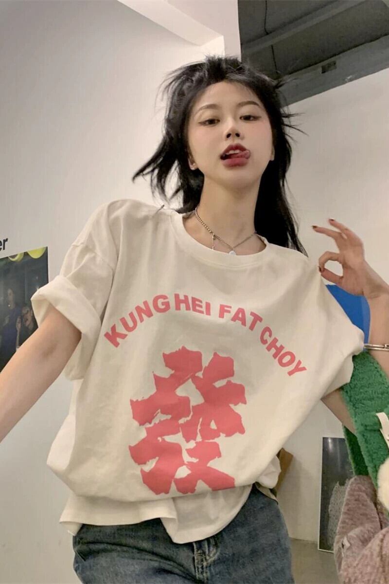 楽しい麻雀曲プリント半袖 T シャツの女性の 2023 夏の新しいミドル丈のファッションルーズオールマッチトップス サマー 夏物 Tシャツ 0921927722731463