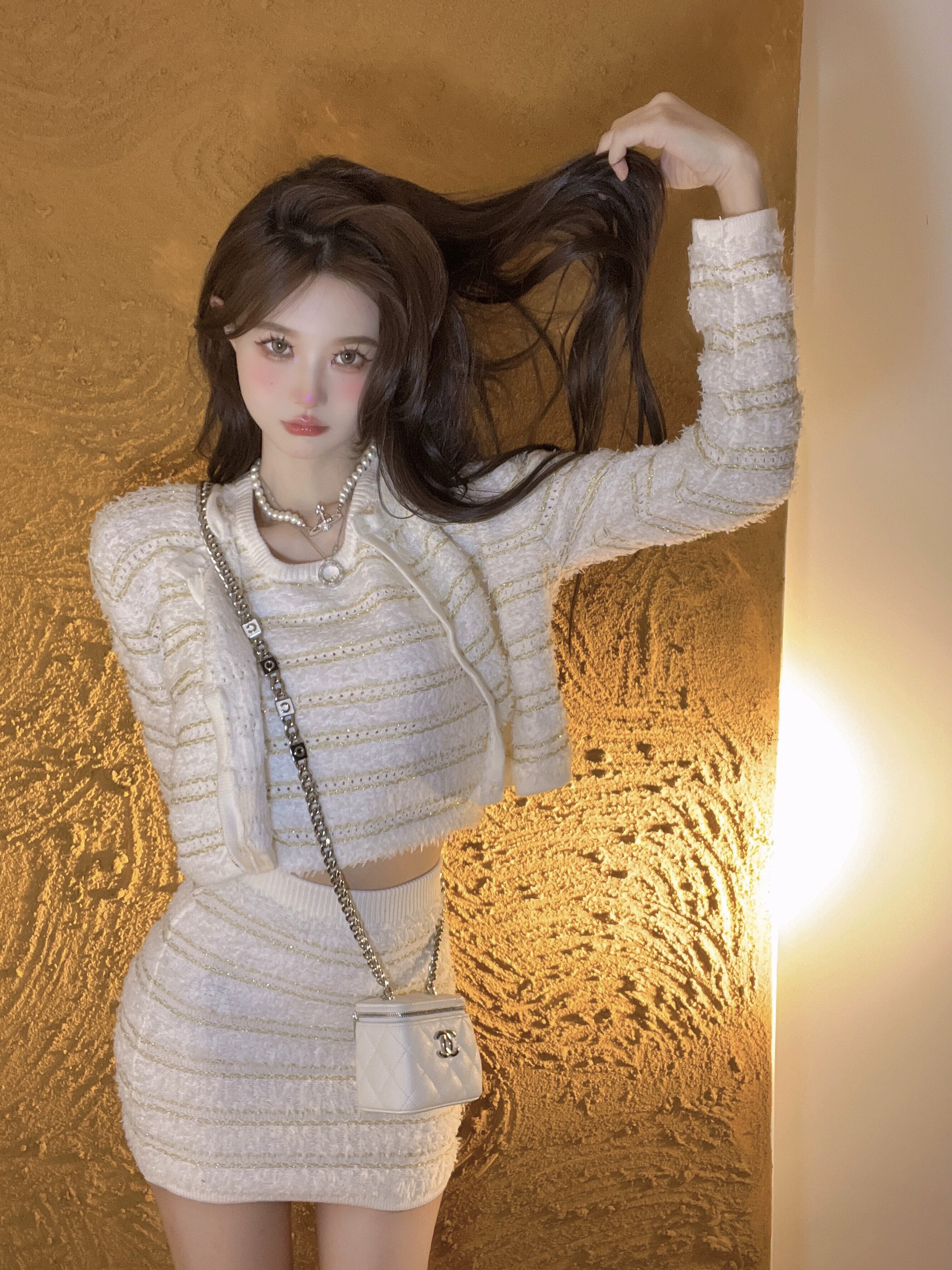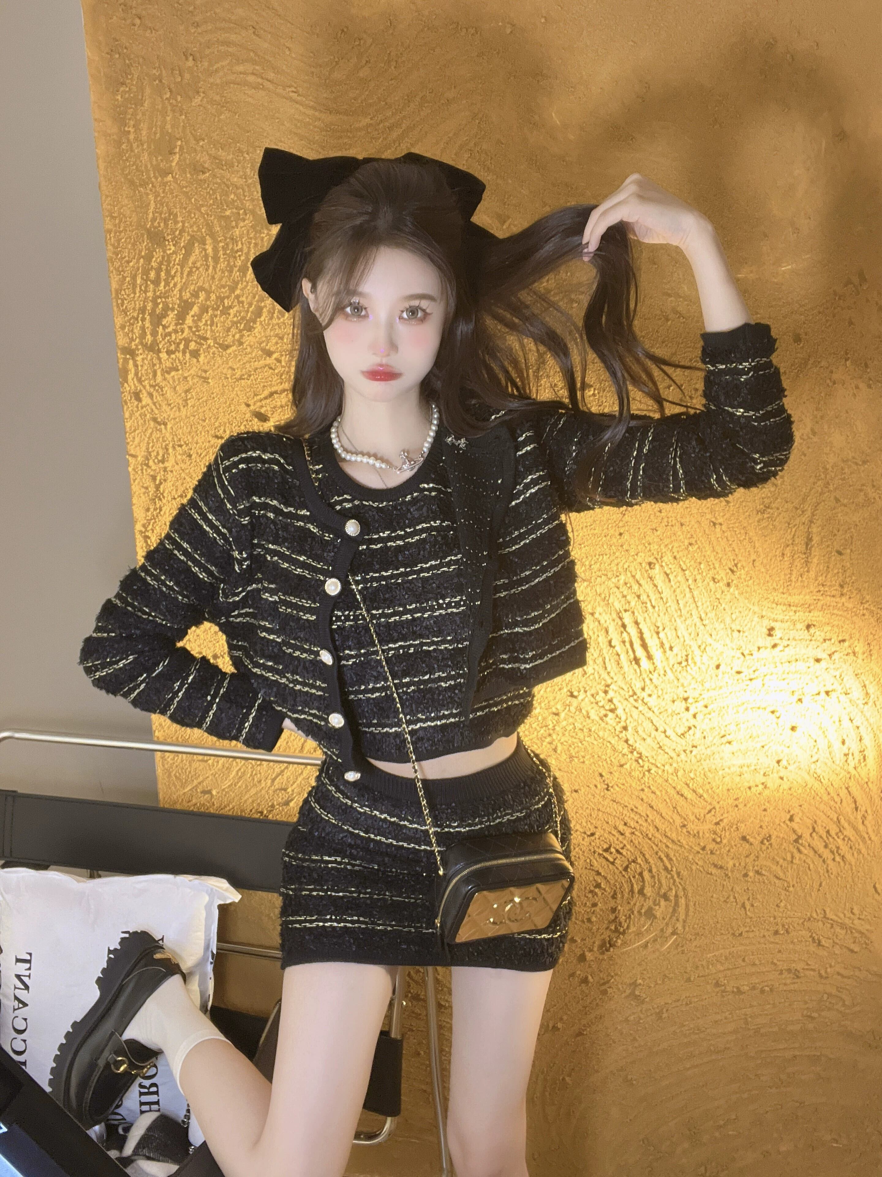 小さな香りの風の女性の気質スーツ女性 2023 春の新作コートトップベストスカートニットスリーピーススーツ スプリング 春物 0921911856609268