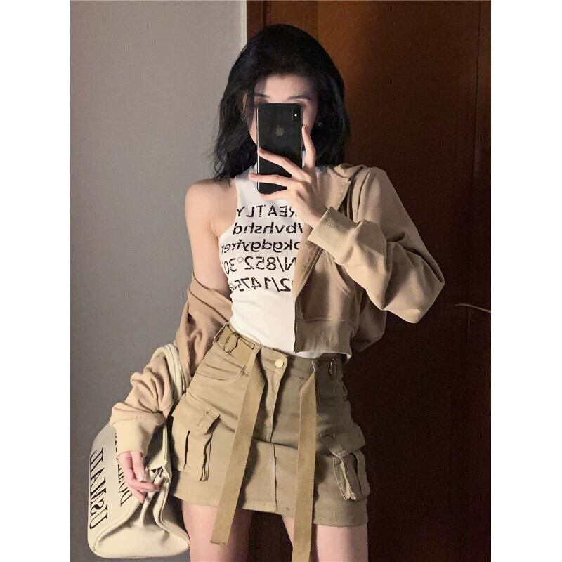 アメリカンレタープリントベストレディース2023春新作スリムフィットハーフハイカラーノースリーブワンピーストップ スプリング 春物 092194436220680