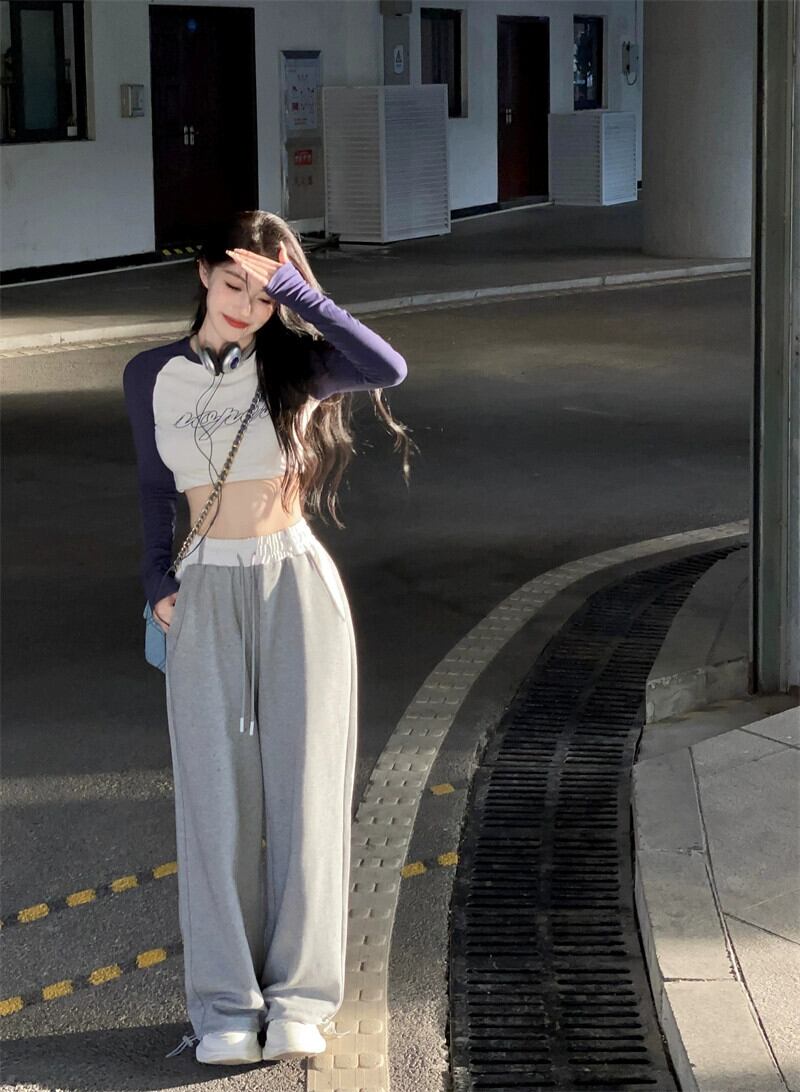 アメリカンシックな配色長袖Tシャツレディース2023春新作オールマッチ気質スリムショートトップ潮 ロング スプリング 春物 0921992188559542