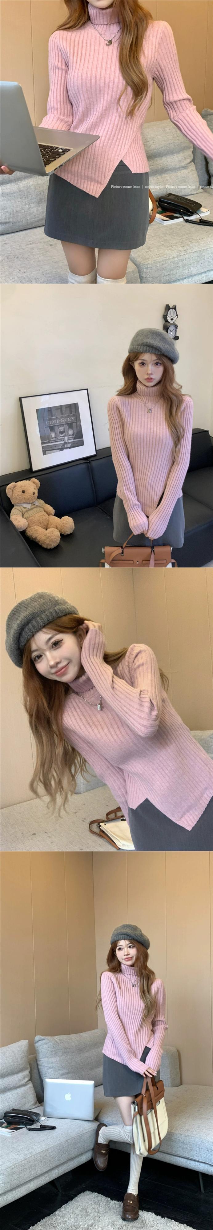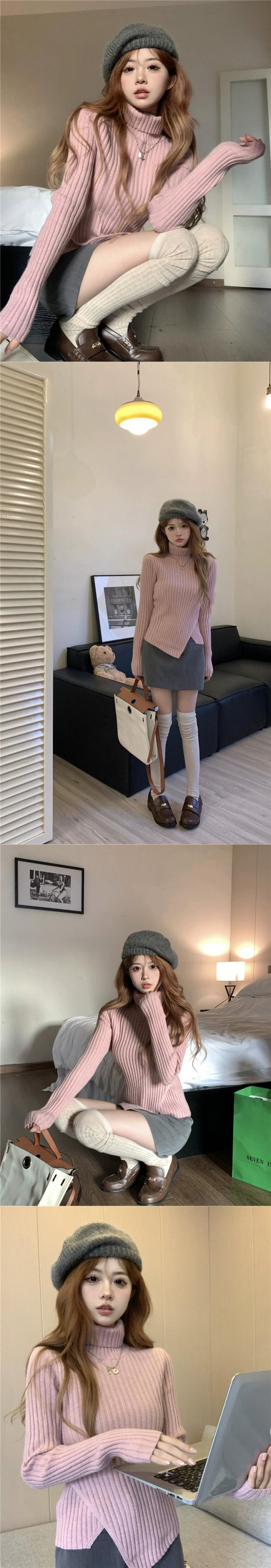 オールマッチデザインセンスショートセクション高齢者スリットセーターレディース春秋 2023 新しい気質痩身底ニットトップ スプリング 春物 オータム 秋物 0921937117842932