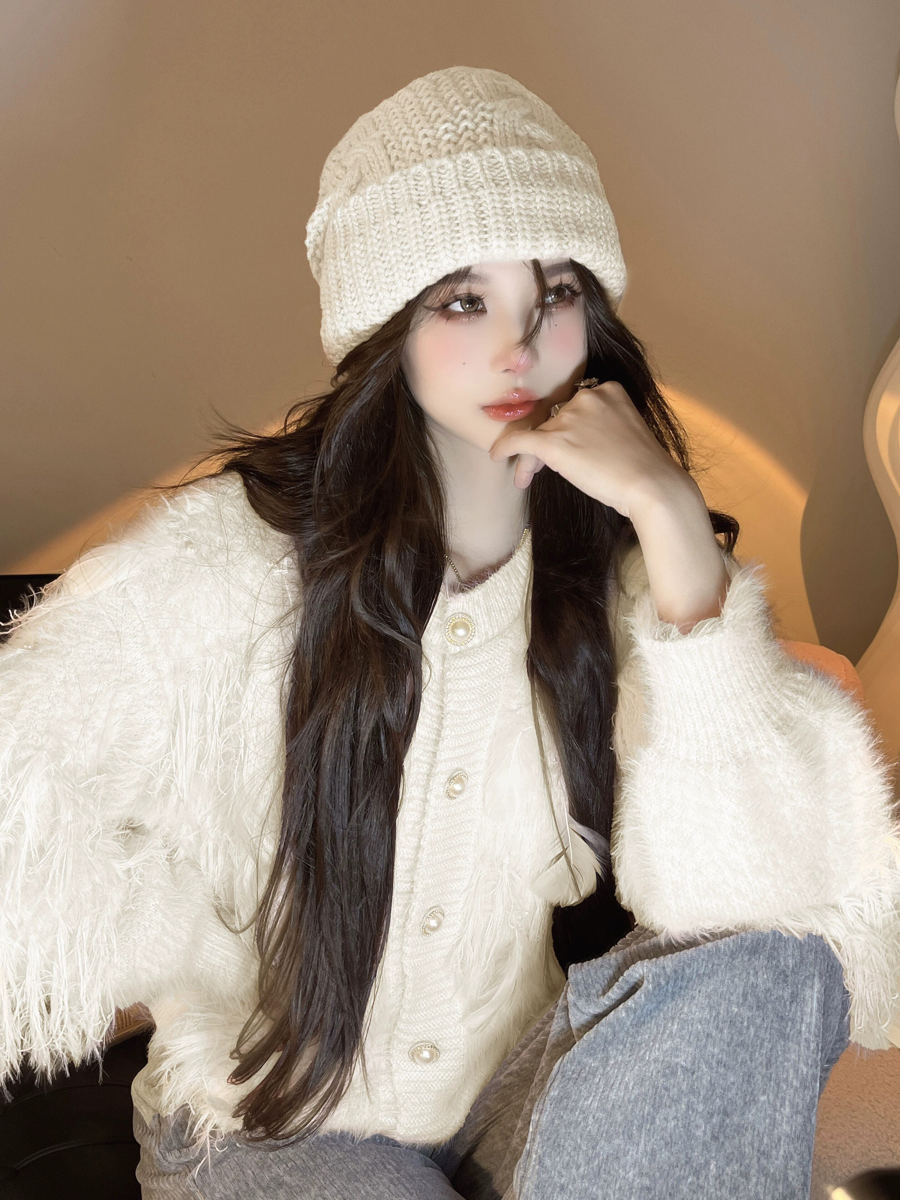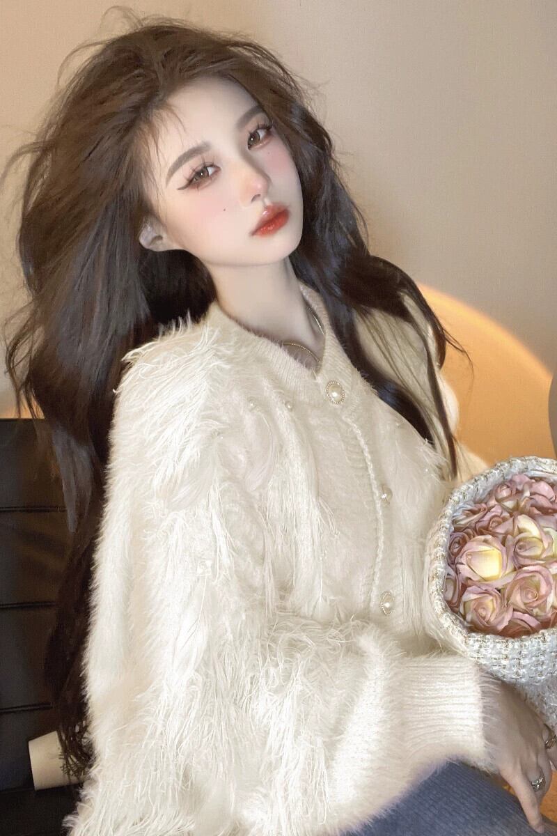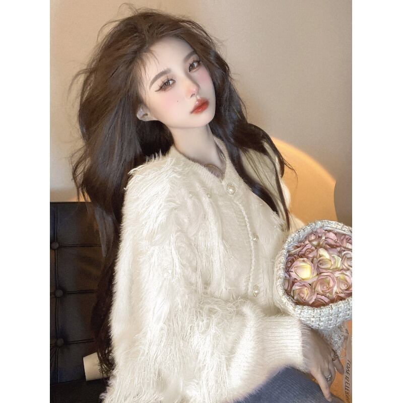 気質セレブ重工業フェザーパールテルセータージャケット女性春ニッチデザイン長袖カーディガントップ ロング スプリング 春物 真珠 0921934026720725