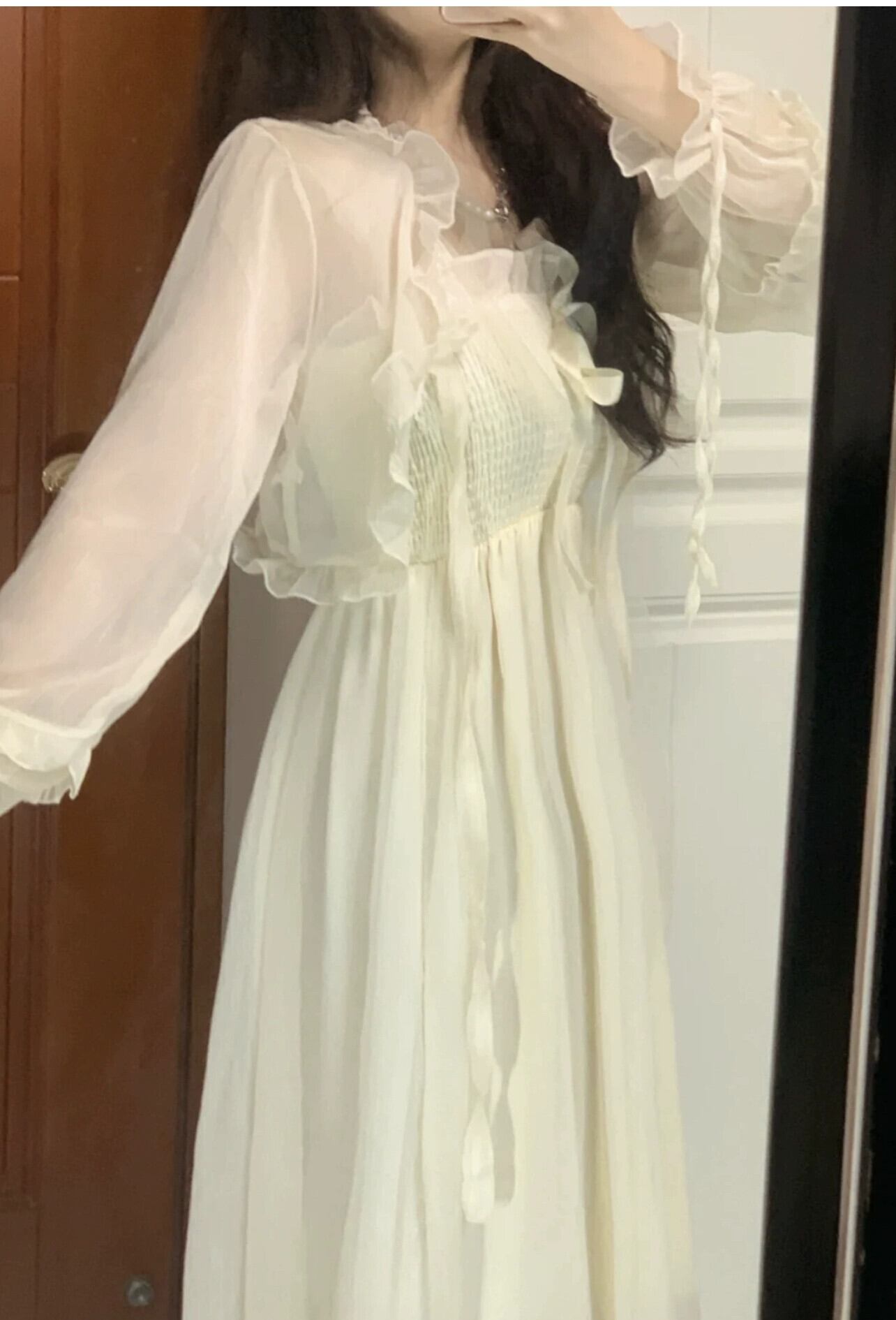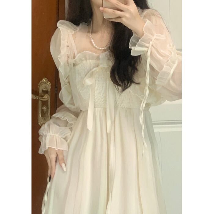 妖精の気質木耳ストラップドレス女性の夏の 2023 新しいストラップ蝶ネクタイウエスト A ラインスカートイン リボン サマー 夏物 Aライン 0921985567642098