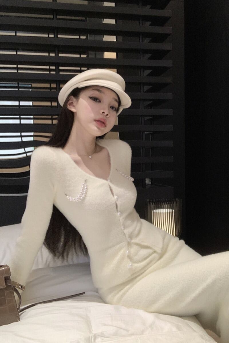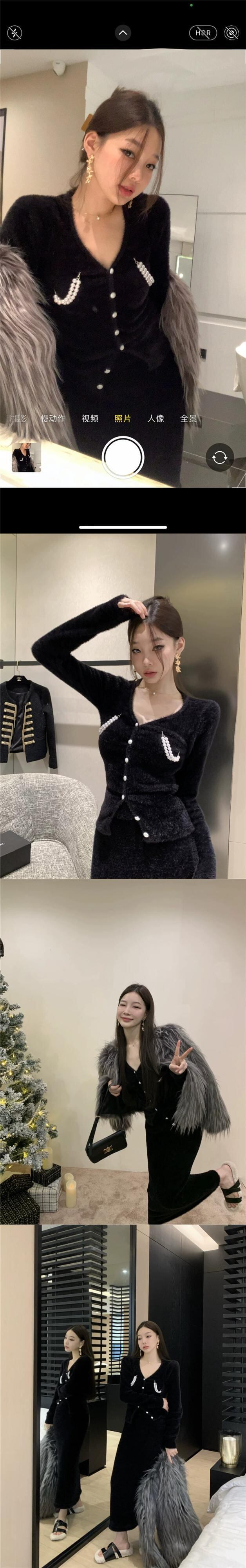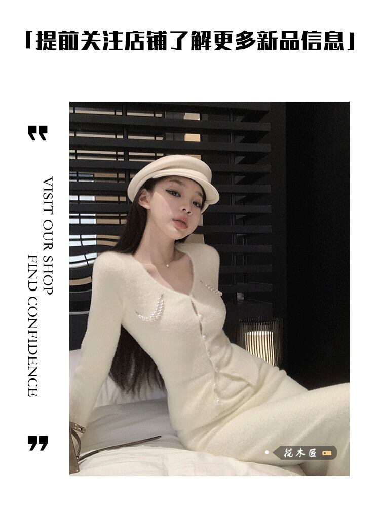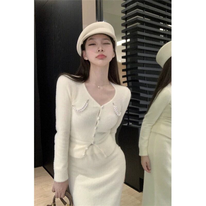 純粋な欲望のハイエンド模造ミンクウールニットカーディガントップ女性の春と秋のスーツミッドレングスバッグヒップスカートツーピースセット スプリング 春物 オータム 秋物 0921960412189575