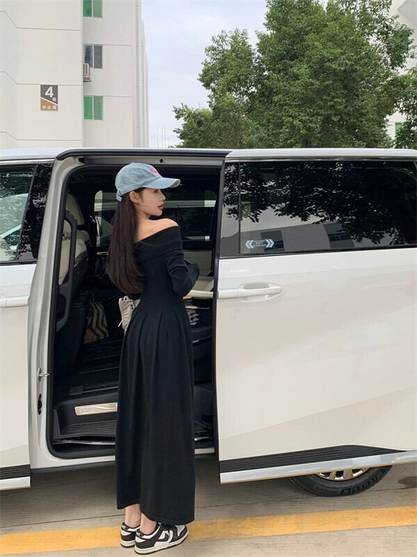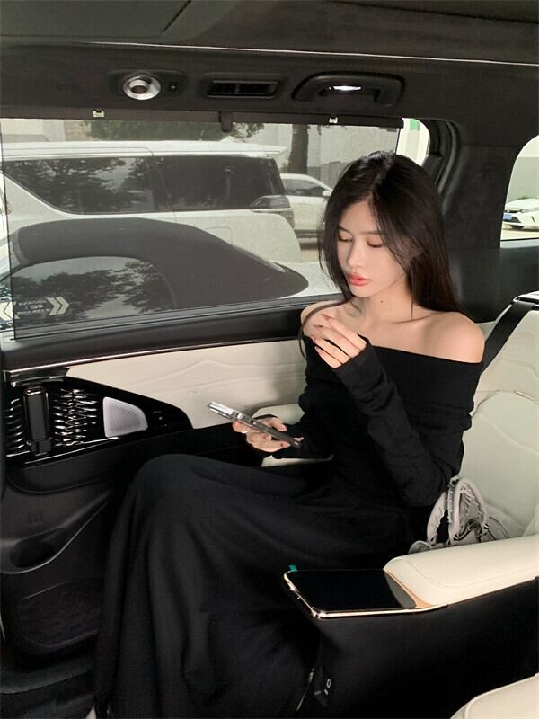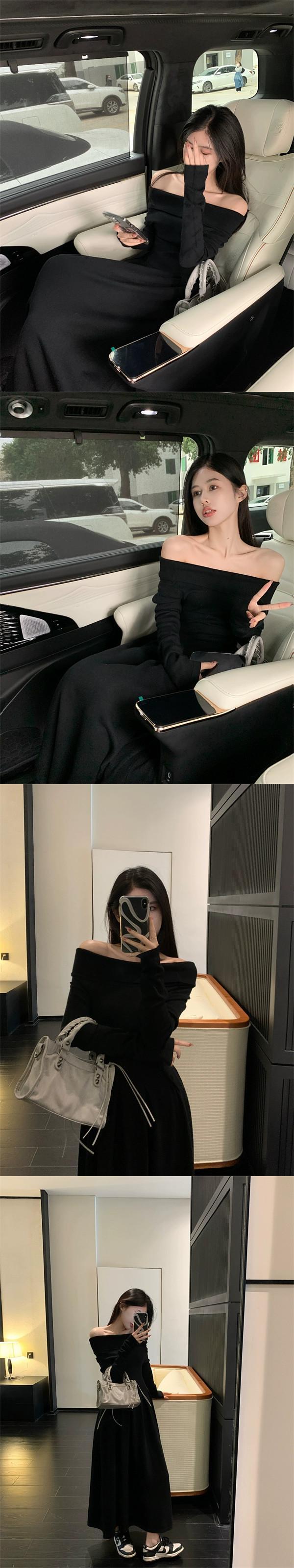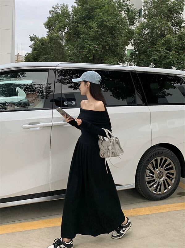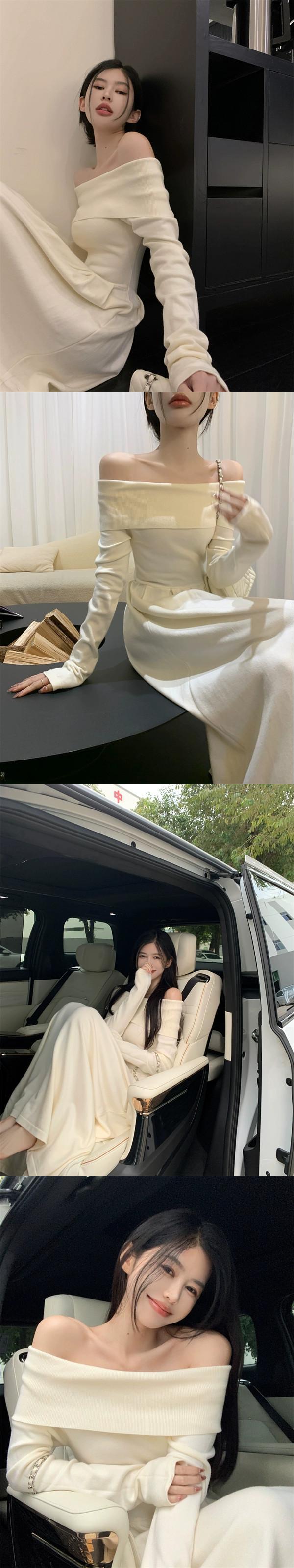 フランスの高級ワンネック長袖ドレスの女性の 2023 年春と秋の新しいオールマッチスリムで薄いニットドレス ロング スプリング 春物 オータム 秋物 0921920785572071