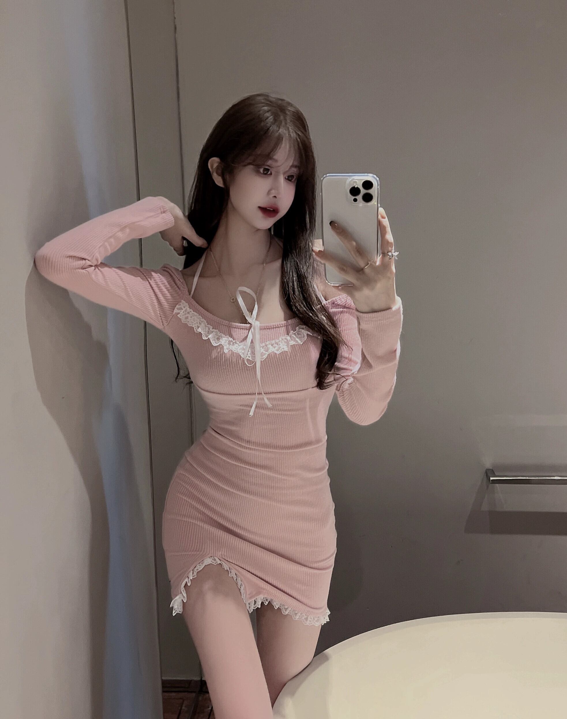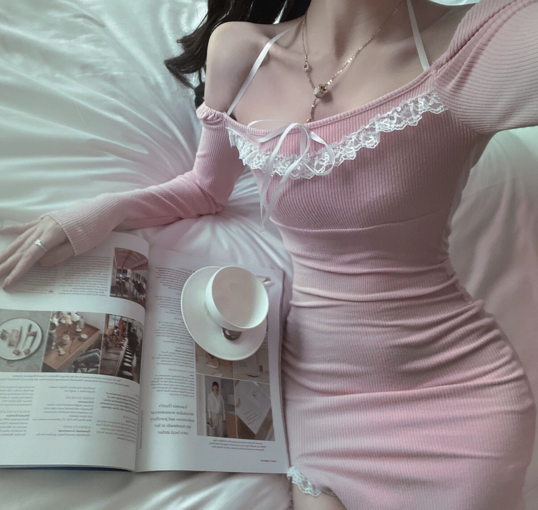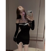 純粋な欲望女の子ステッチレースドレス女性の春と秋 2023 新しいウエスト痩身セクシーなハンギングネックバッグヒップスカート スプリング 春物 オータム 秋物 092197715836015
