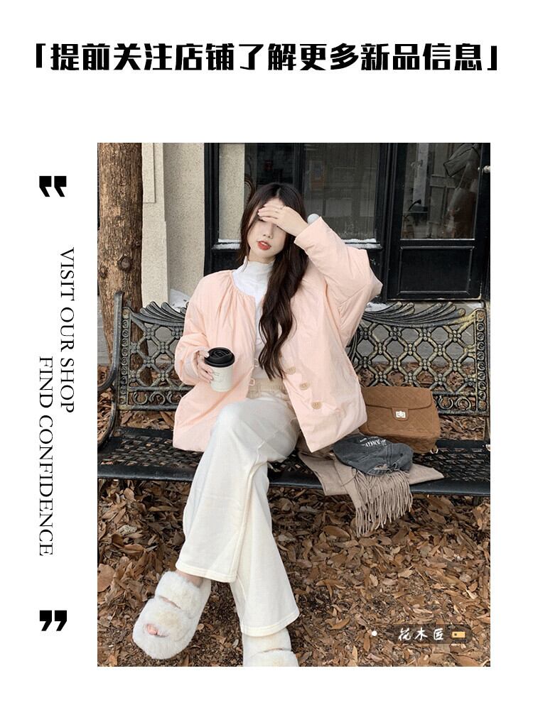スタイルピンク優しい風ショートパッド入りジャケット女性春と秋 2023 新しい緩い肥厚暖かい綿パッド入りジャケット コットン スプリング 春物 オータム 秋物 0921960725109317