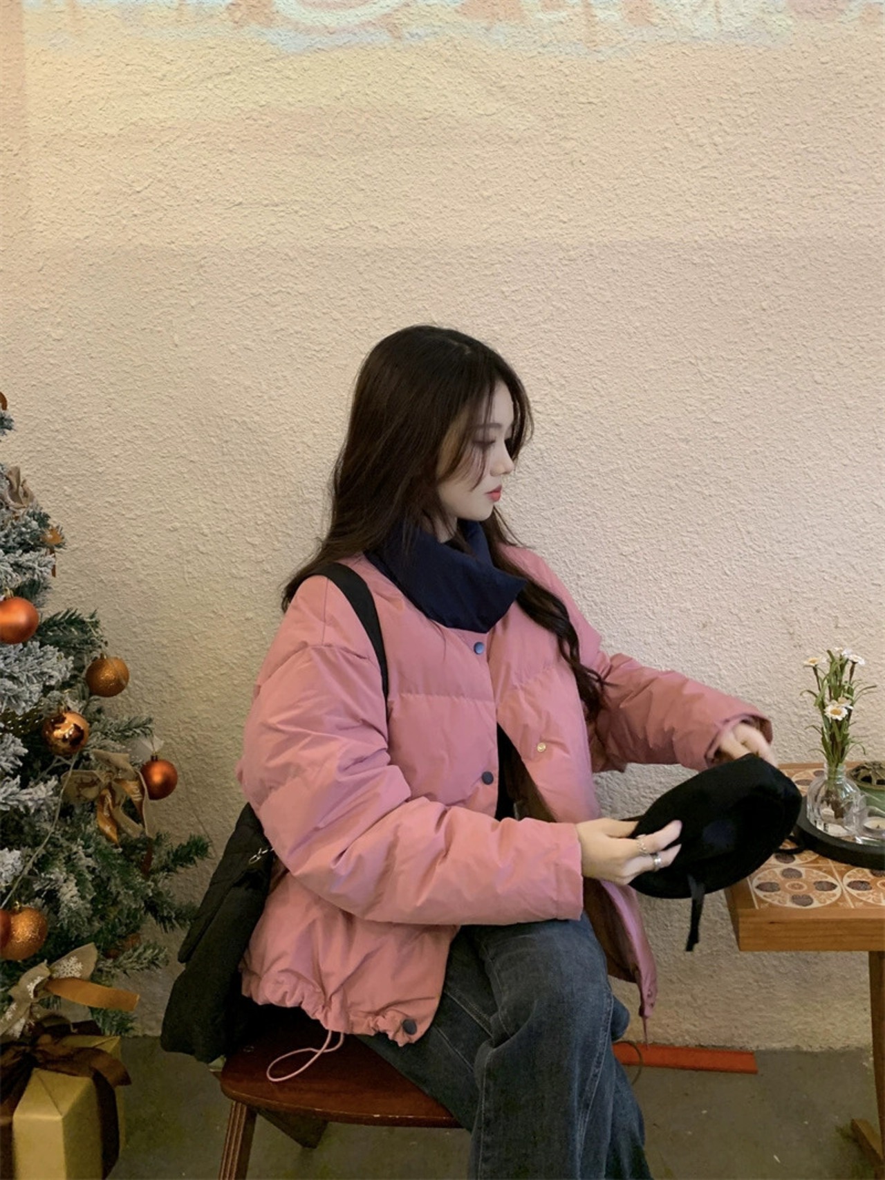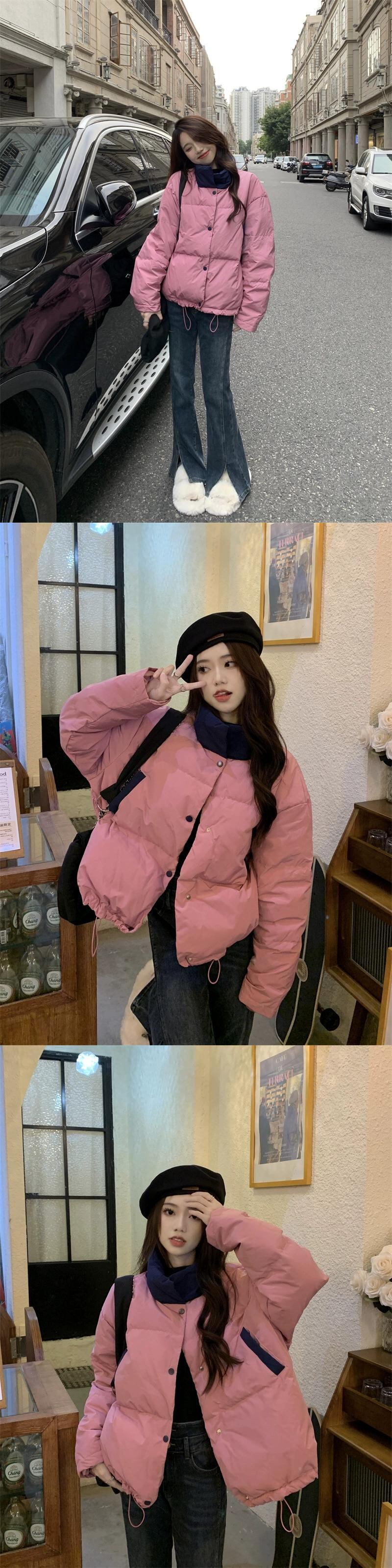 レトロコントラストカラースタンドアップカラールーズショートパッド入りジャケット女性の冬の2023新しいオールマッチ薄型長袖パンジャケット ロング ウィンター 冬物 0921919885933791