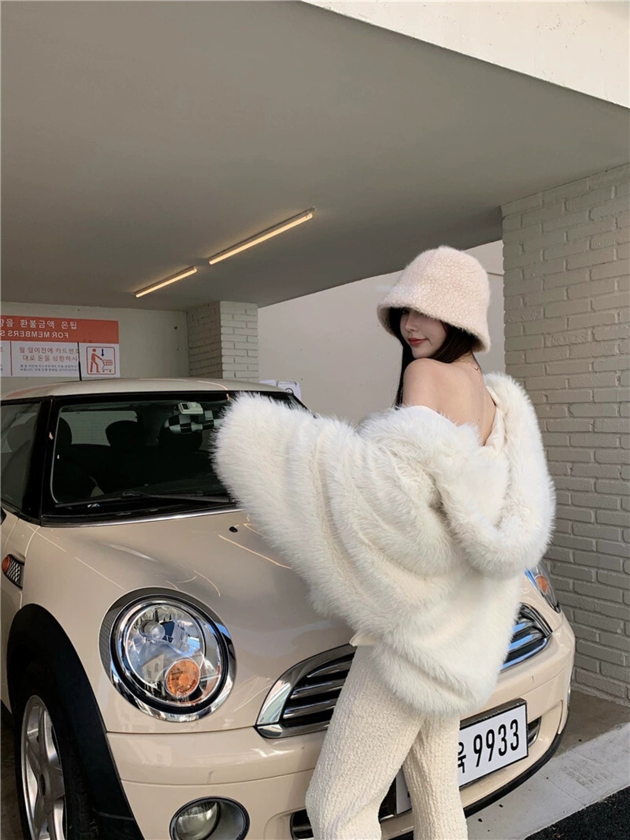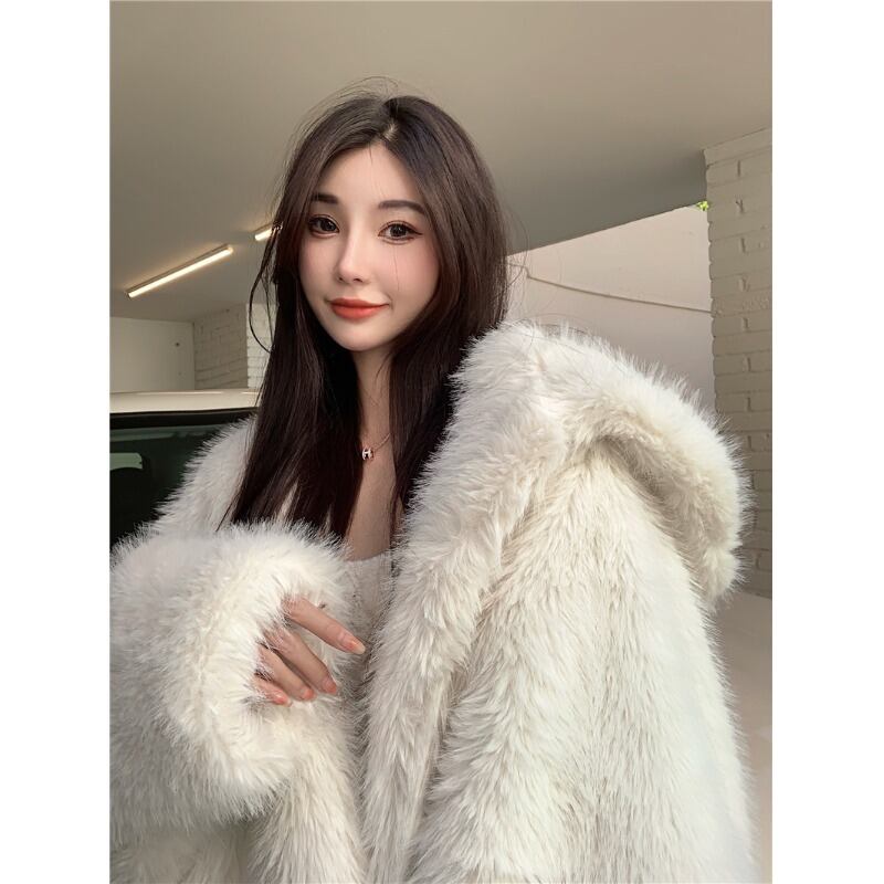 優しい風ファッションフェイクファージャケット女性の冬 2023 新しい厚く暖かいルーズフード付きカーディガントップ ウィンター 冬物 0921985849760136