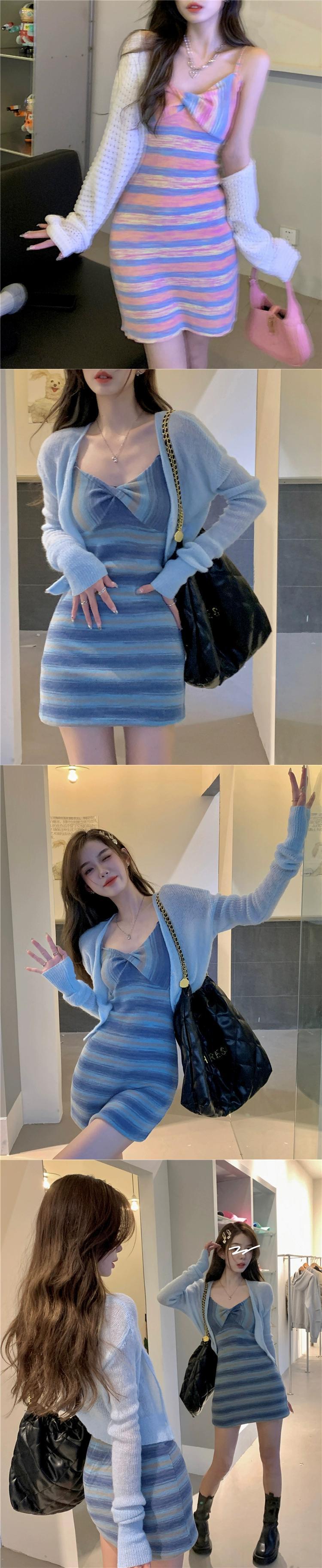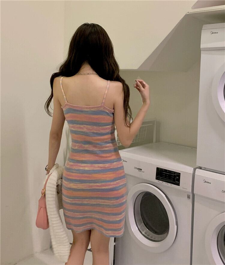 純粋な欲望恋人ヒットカラーストライプニットサスペンダードレス女性の夏の 2023 新しいウエスト痩身スカート 大人ガーリー スウィート キュート カジュアル サマー 夏物 0921920618198093