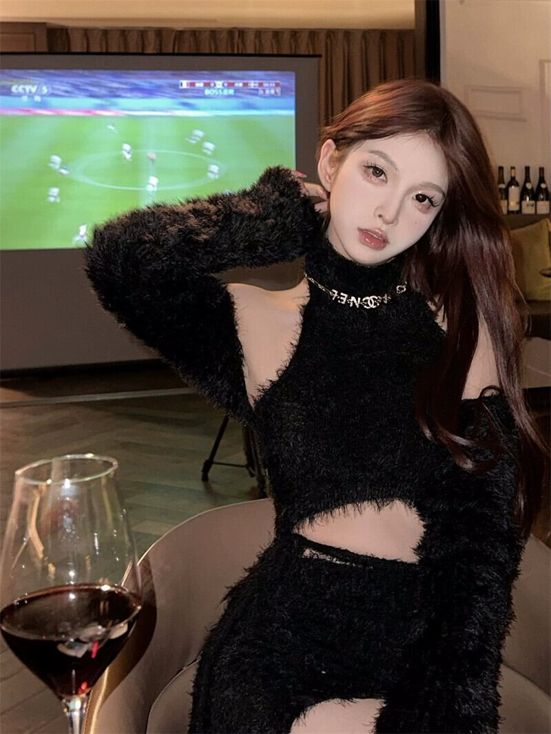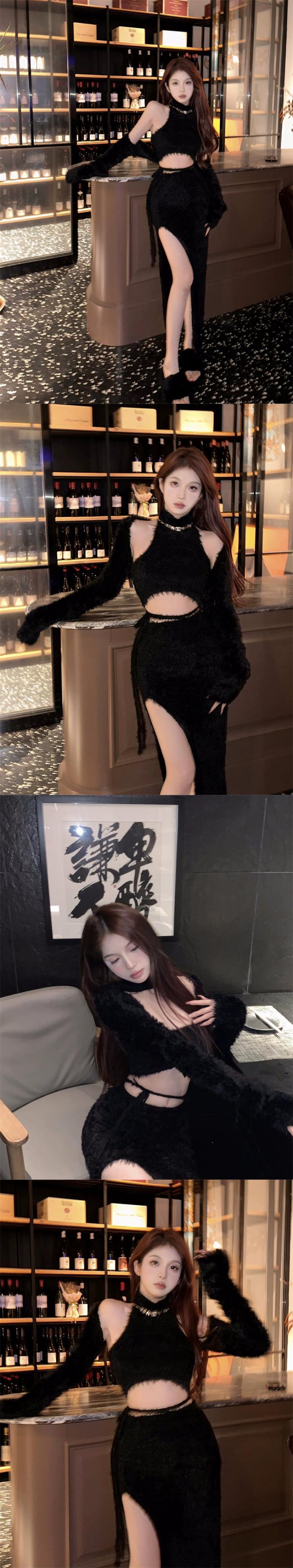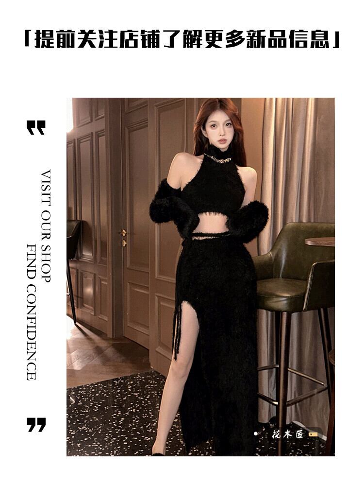ホットブラックファッションスーツ女性 2023 春の新しいショールハンギングネックベストスリットスカートスリーピーストレンディ スプリング 春物 092194371999630