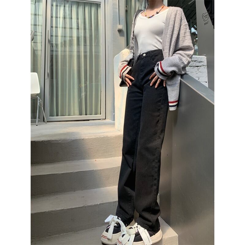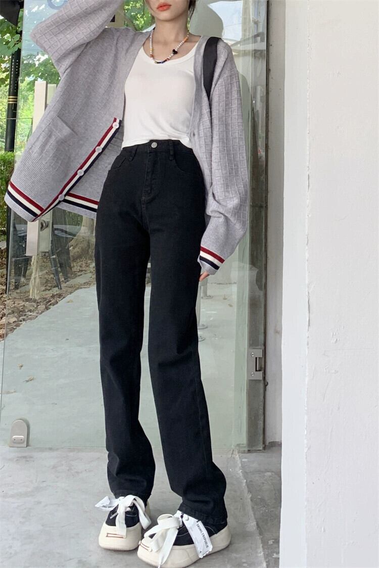 黒ハイウエスト薄い弾性ストレートジーンズ女性の夏の 2023 新しいオールマッチ気質カジュアルモップパンツ ハイウェスト ブラック エラスティック 伸縮 サマー 夏物 0921939237245027