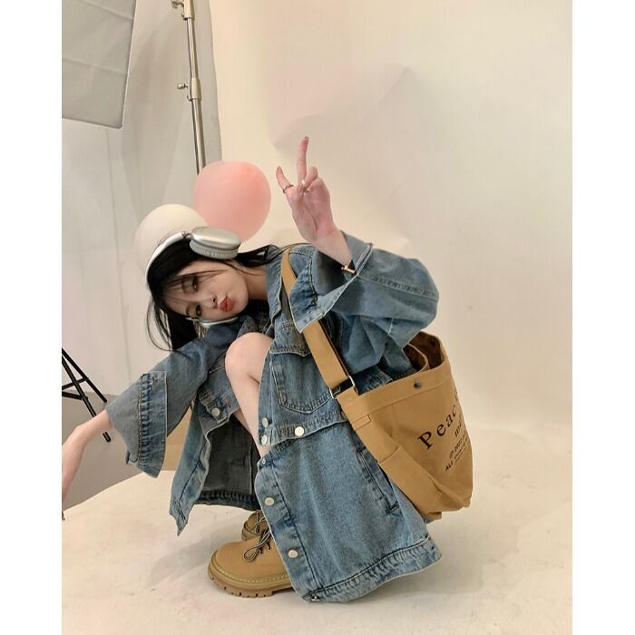 レトロなデザインセンス取り外し可能なデニムジャケット女性の 2023 春の新作ルーズカジュアル長袖トップトレンド ロング スプリング 春物 0921995197381361