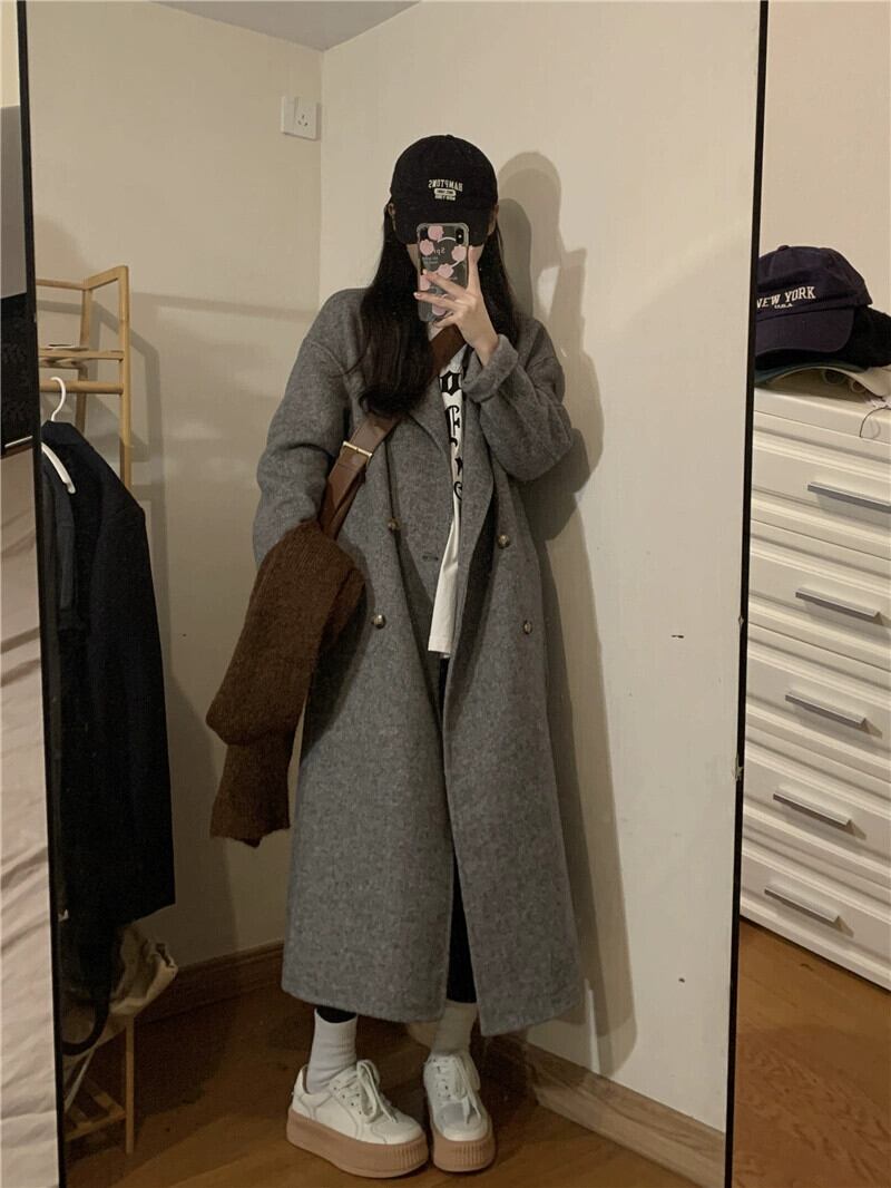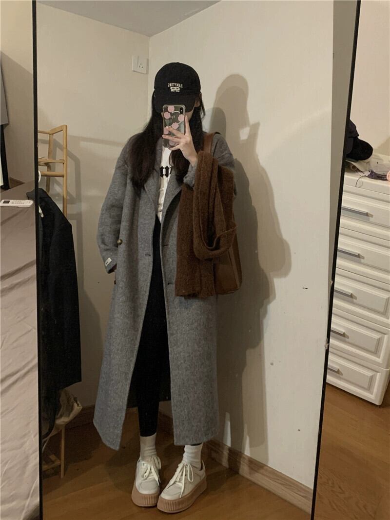グレー気質スーツウールコート婦人服2023春秋新バージョンハイエンドミドル丈膝上コート スプリング 春物 オータム 秋物 0921977304092797
