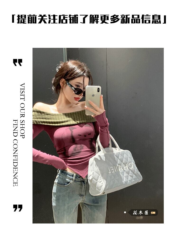 セクシーなショートワンショルダー長袖 Tシャツ女性の 2023 春の新作痩身薄手のボトムシャツトップ潮 ロング スプリング 春物 0921962990173961