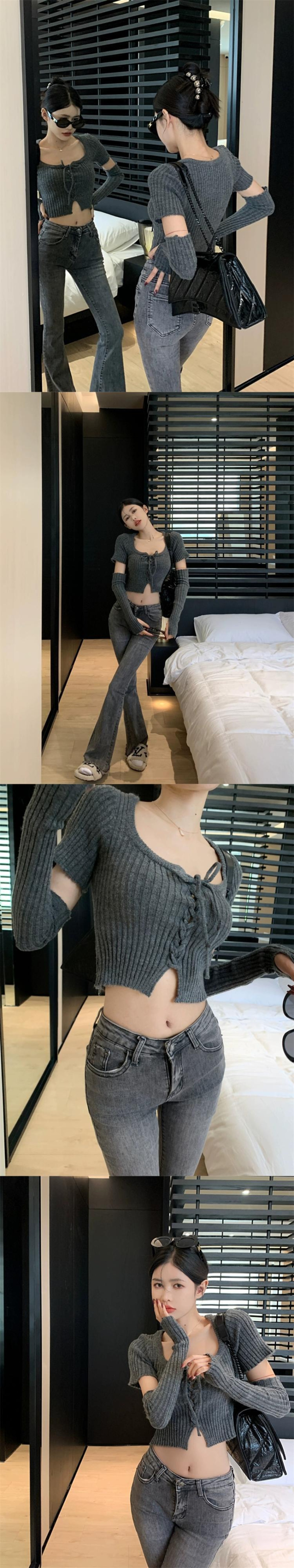 スパイスぶら下げネックストラップスクエアリーダーニットウェア女性 2023 春の新しいオールマッチショートスリムトップイン スプリング 春物 スクウェア 0921912195394838