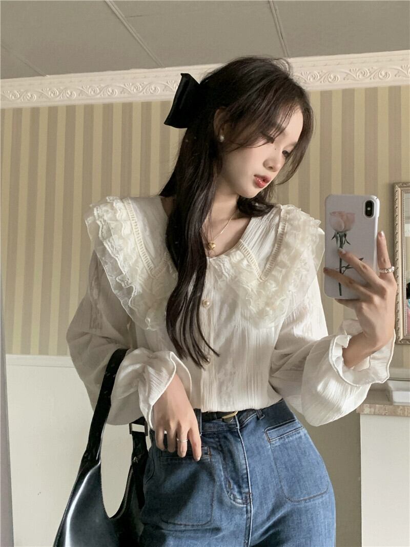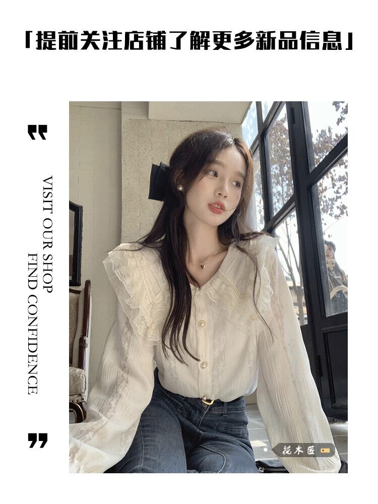 フランスの妖精レースステッチ長袖シャツ女性の夏の 2023 新しい甘い人形襟痩身オールマッチシャツ ロング 大人ガーリー スウィート キュート カジュアル サマー 夏物 0921916609296571