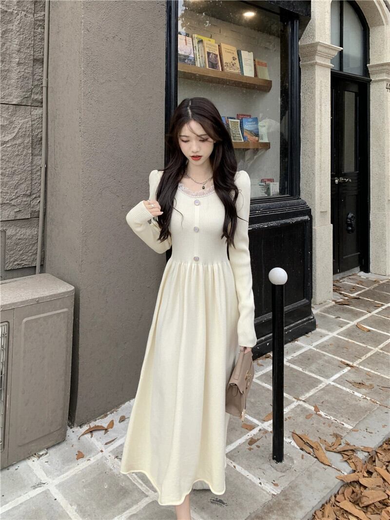 優しくエレガントな気質の薄手のニットドレスの女性の 2023 年春の新しいミドル丈のウエストウエストオールマッチ初恋スカート スプリング 春物 0921980793295657