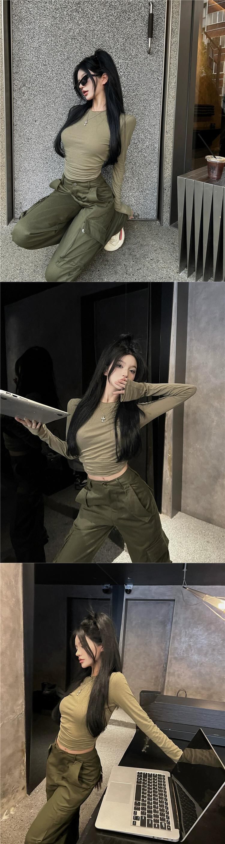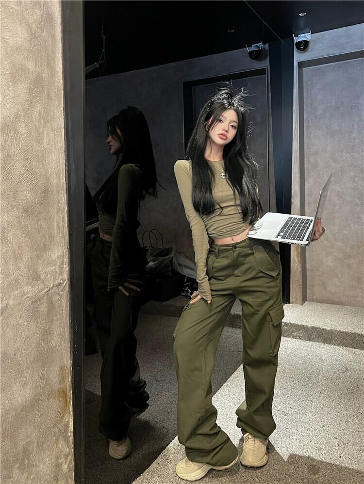 アメリカン スパイス ガールズ アーミー グリーン パンツ レディース 冬 2023 ウエスト ルーズ ストリート オールマッチ ポケット オーバーオール ウィンター 冬物 0921976345396077