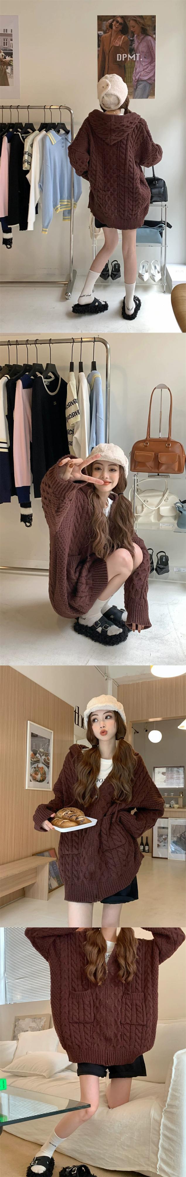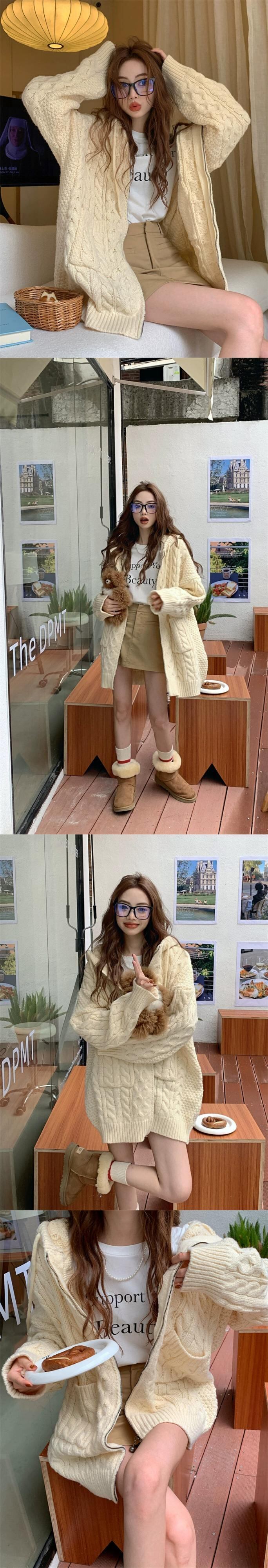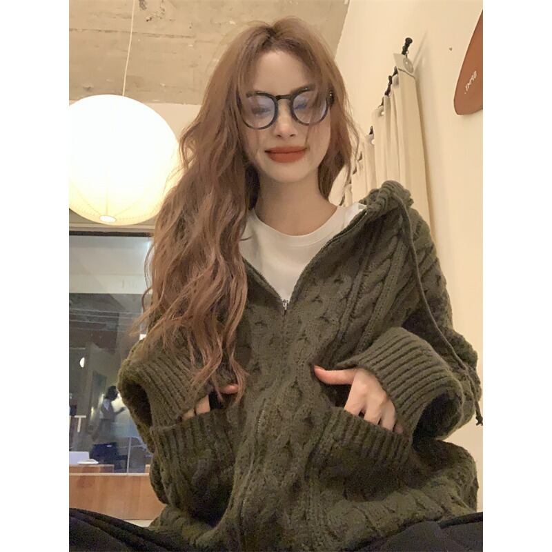オールマッチツイストフード付きセータージャケットのバージョンの女性の2023年春の新しい怠惰なスタイルのカジュアルな長袖ニットカーディガン ロング スプリング 春物 0921961784639734