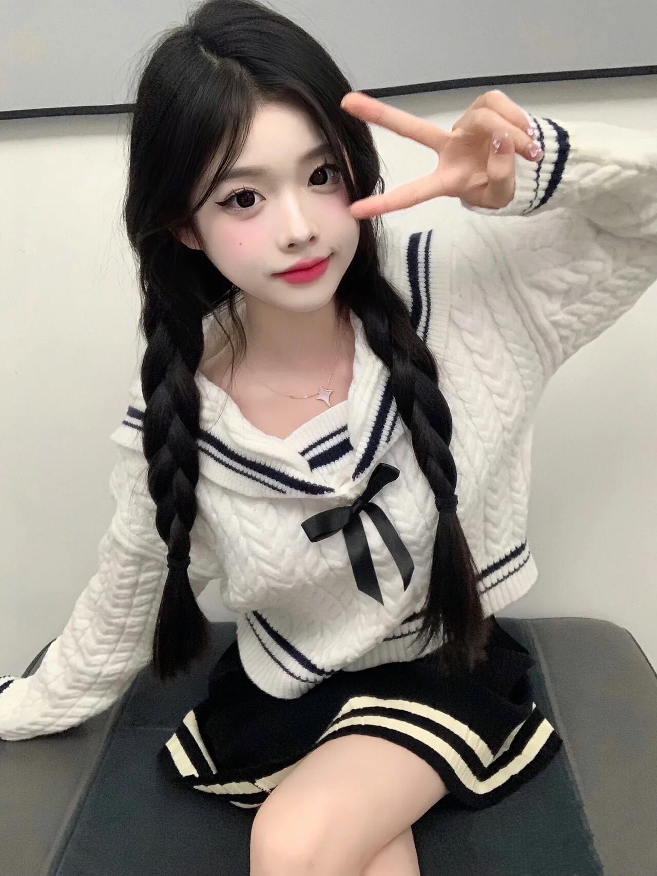 甘くてスパイシーなカレッジスタイルのルーズプルオーバーセーターレディース 2023 春の新作オールマッチショートスリムニットトップイン 大人ガーリー スウィート キュート カジュアル スプリング 春物 0921978178157562