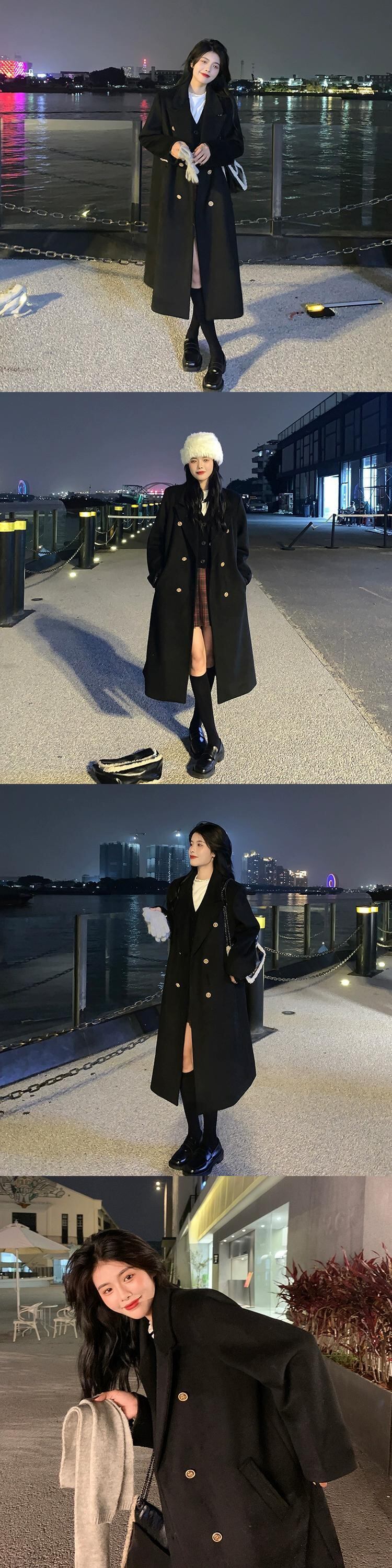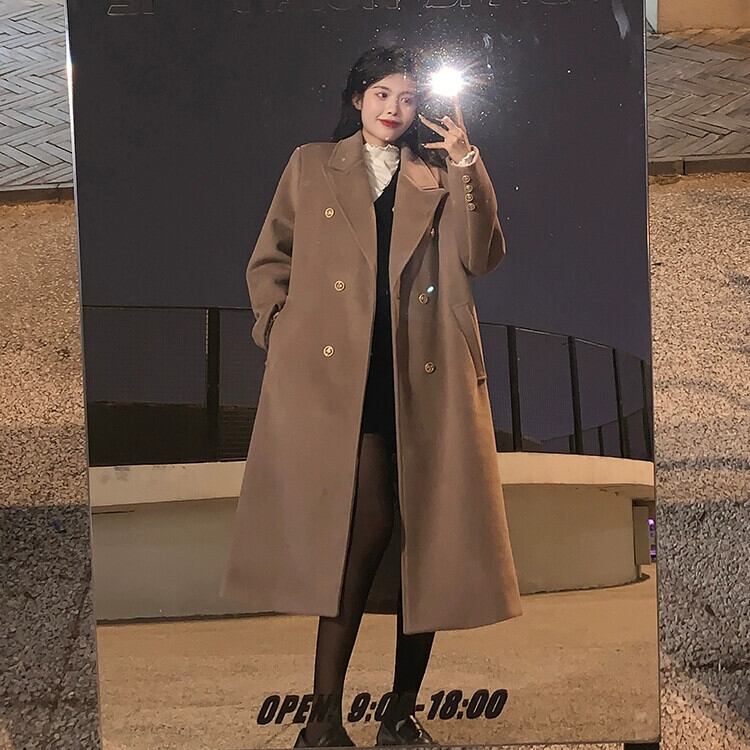 スタイル気質ダブルブレストウールコート女性の春と秋の 2023 新作ミッドレングス厚いセクション暖かい長袖コートトレンディな ロング スプリング 春物 オータム 秋物 0921925434240239