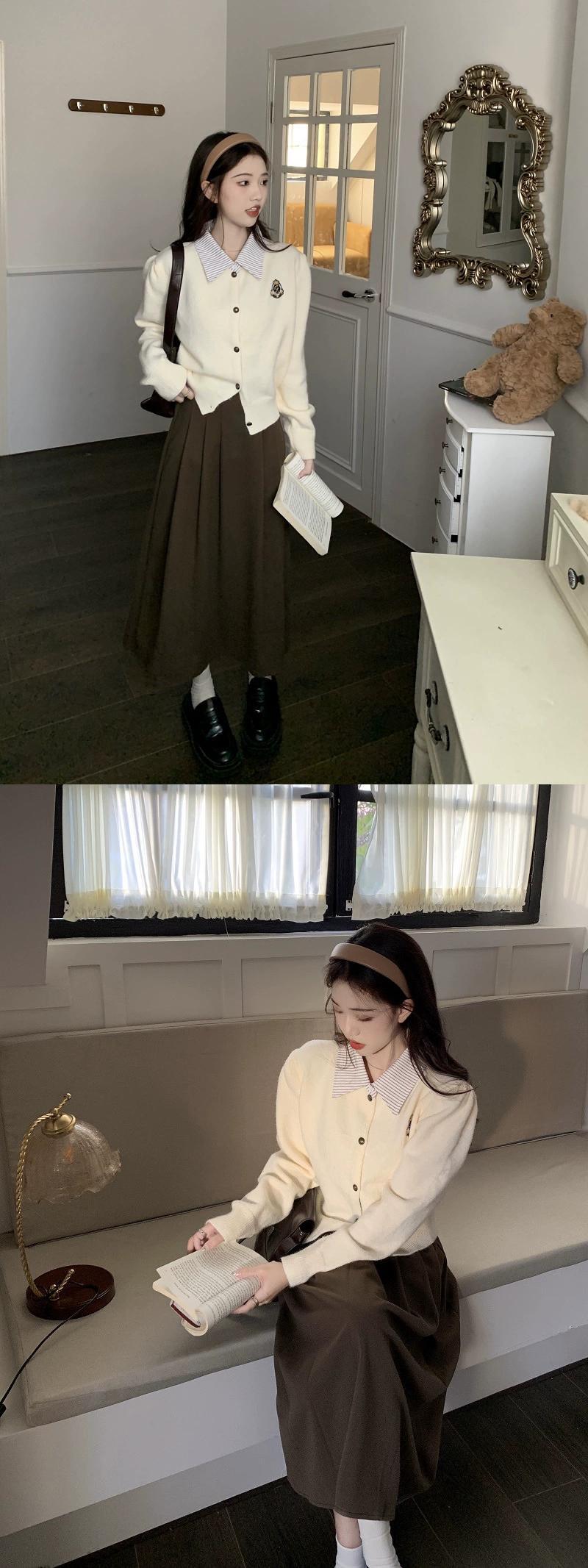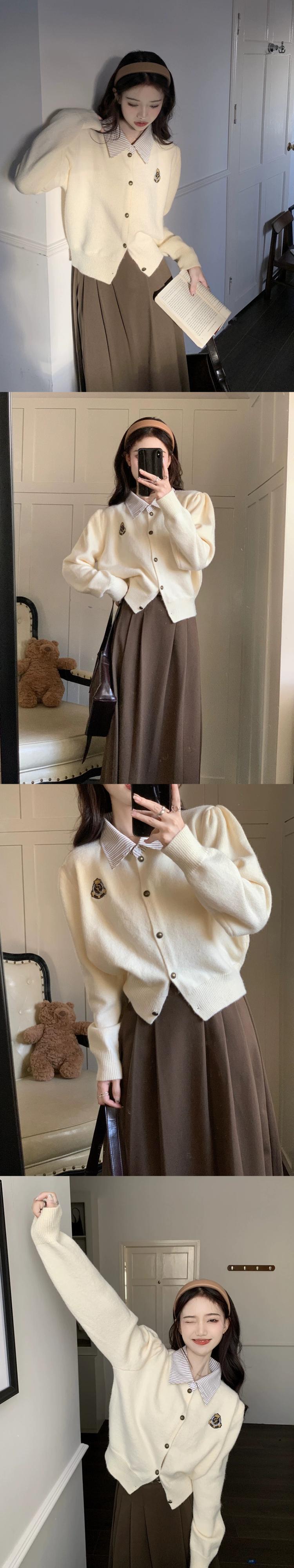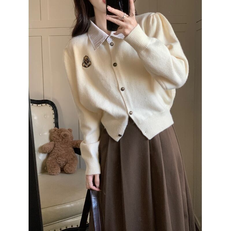 スタイルステッチフェイクツーピースニットセーター女性の春 2023 新しいルーズショート長袖セーターカーディガントップ ロング スプリング 春物 0921998339725685